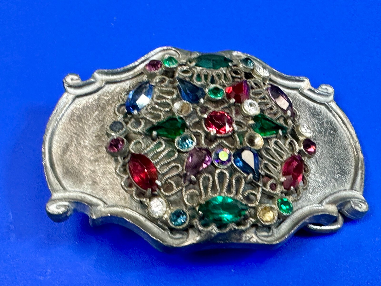 Mixed Color Rhinestones Silver Tone Western Framed Belt Buckle - Missing Stones