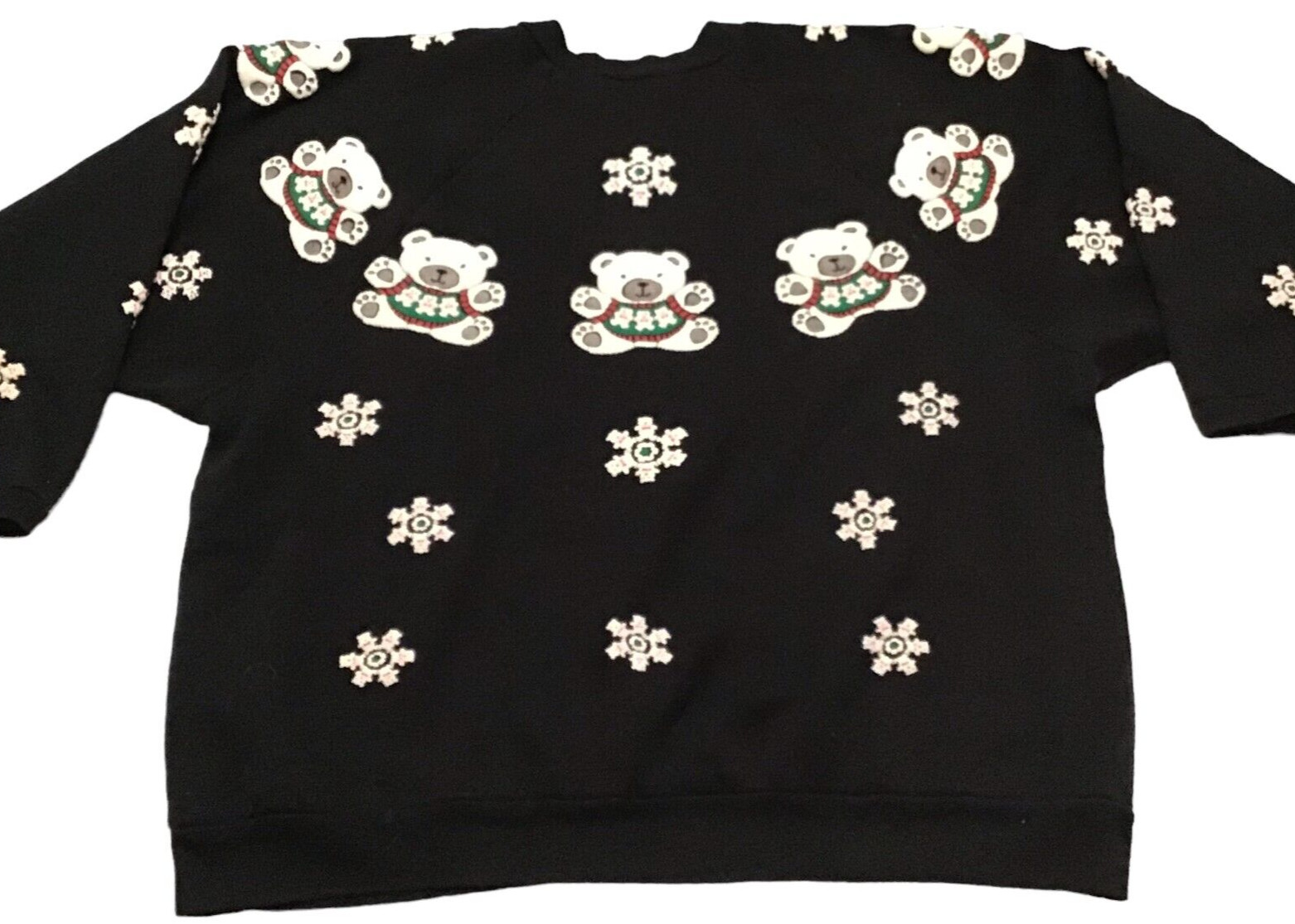 Vintage 80s Womens Size M Sm Med Teddy Bear Sweatshirt Puffy Paint