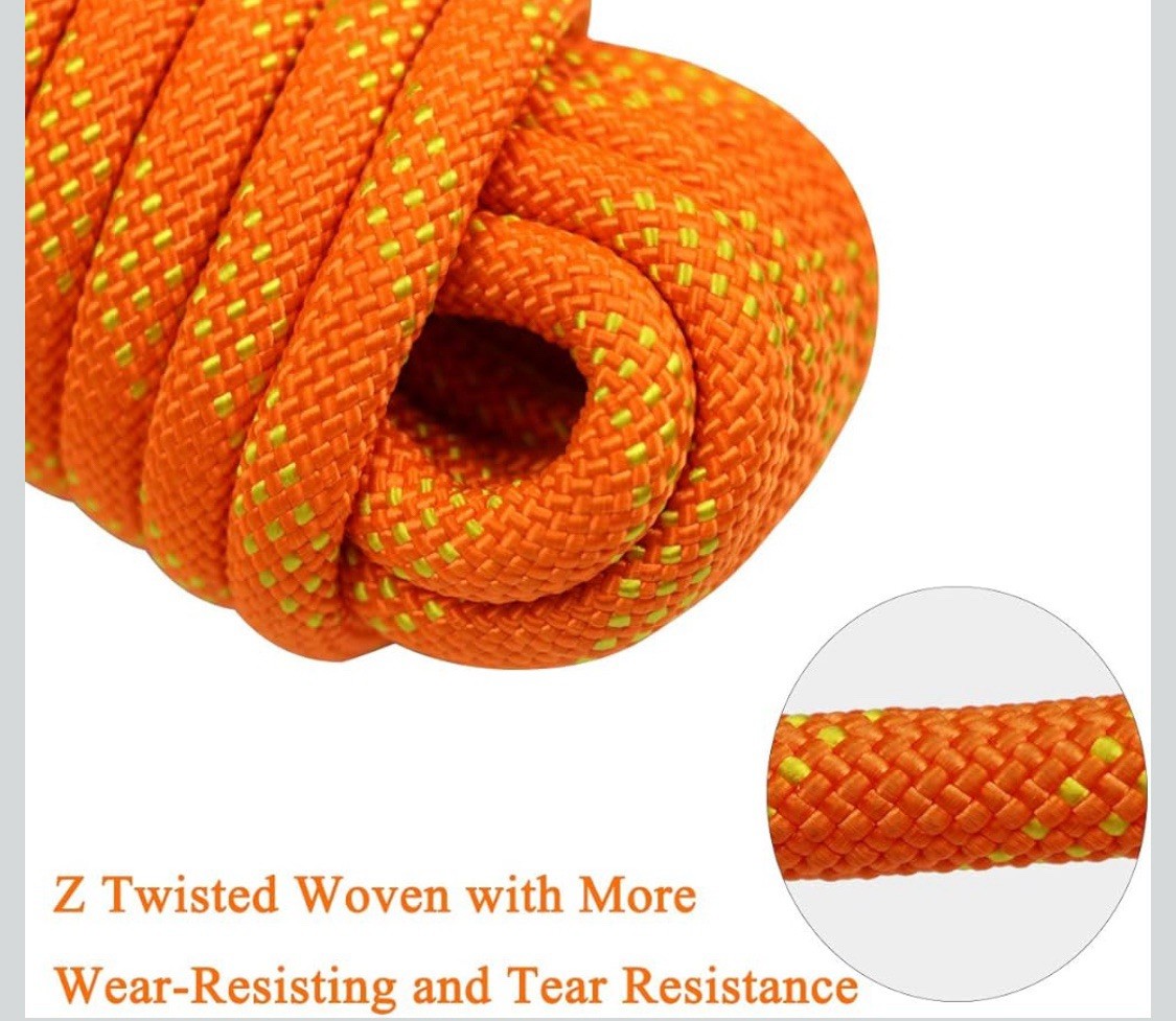 как выглядит Outdoor Climbing Rope Nylon Heavy Duty Static Rope with 2 Safety Carabiners 96ft фото