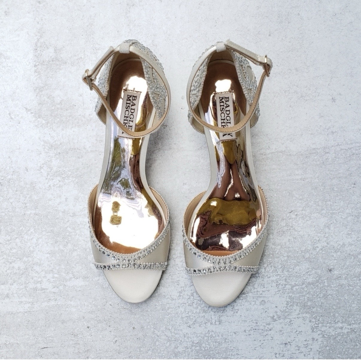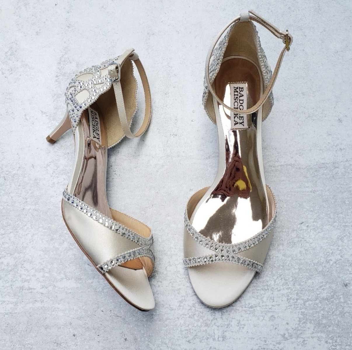 как выглядит Badgley Mischka Gillian Jeweled Ivory Satin Dress Sandal Heels Sz 8 Bride фото