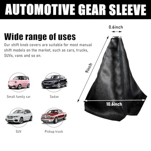 Car Shift Knob Dust Cover, Automotive Shifter Boot Sleeve Leather, Black