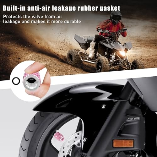 4 PCS Tire Stem Valve Caps, Bling Crystal Rhinestone Wheel Tire Valve Cap Pink