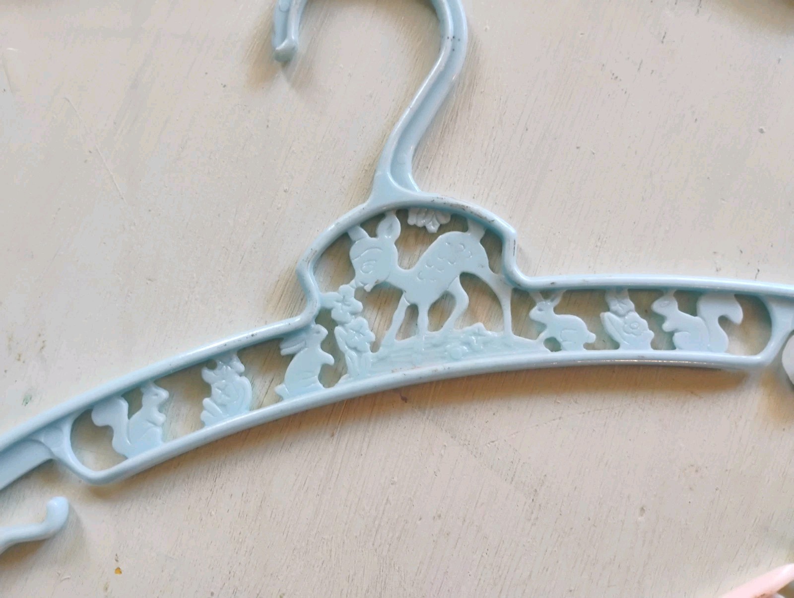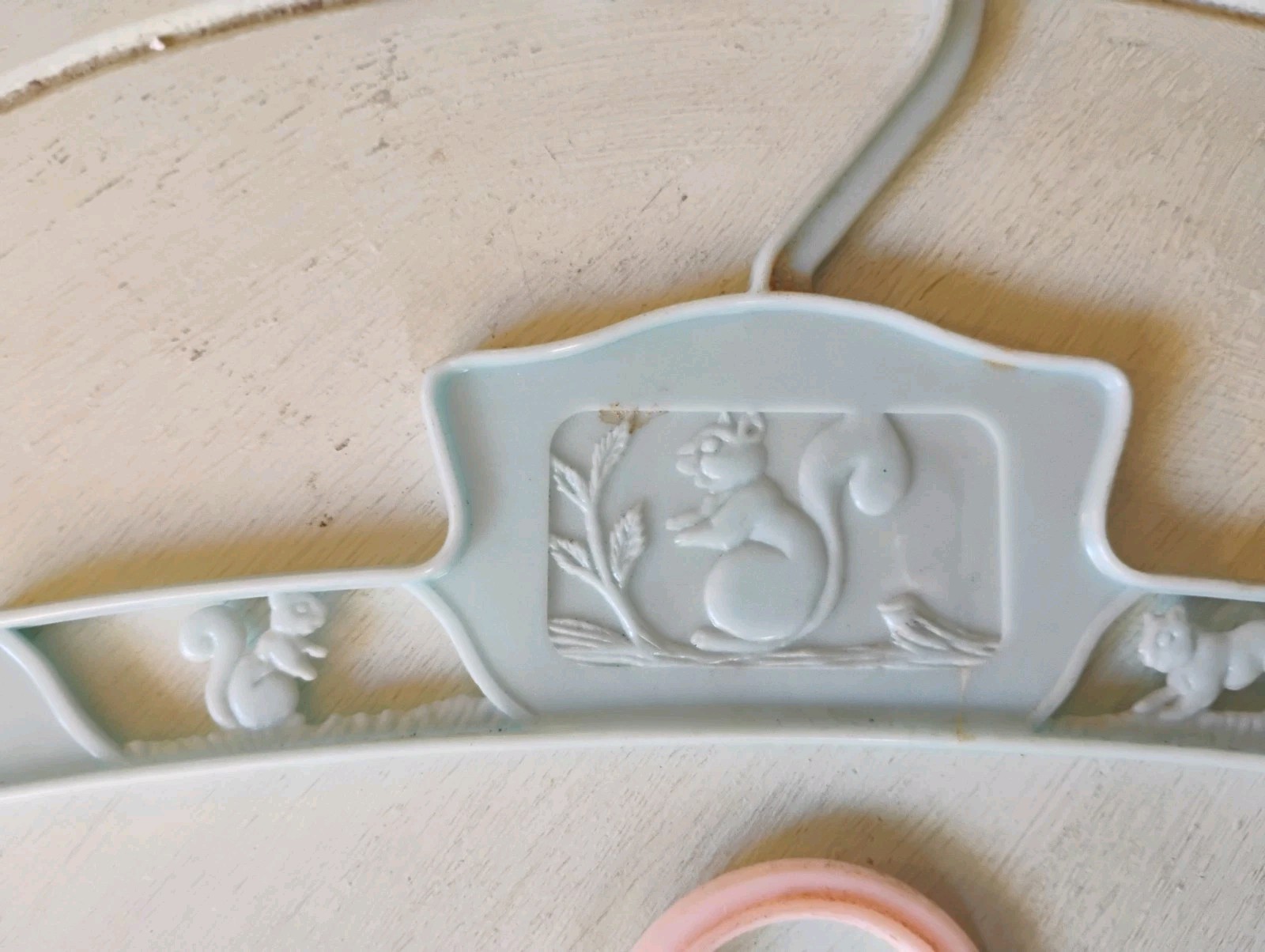 4 Vintage Baby Hangers Bambi Squirrel Blue Pink Plastic Child's 1950s World Co