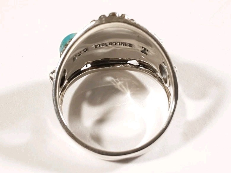 как выглядит 925 STERLING SILVER ETCHED DESIGNS 3 STONES TURQUOISE SIZE 6 RING 4.7g фото