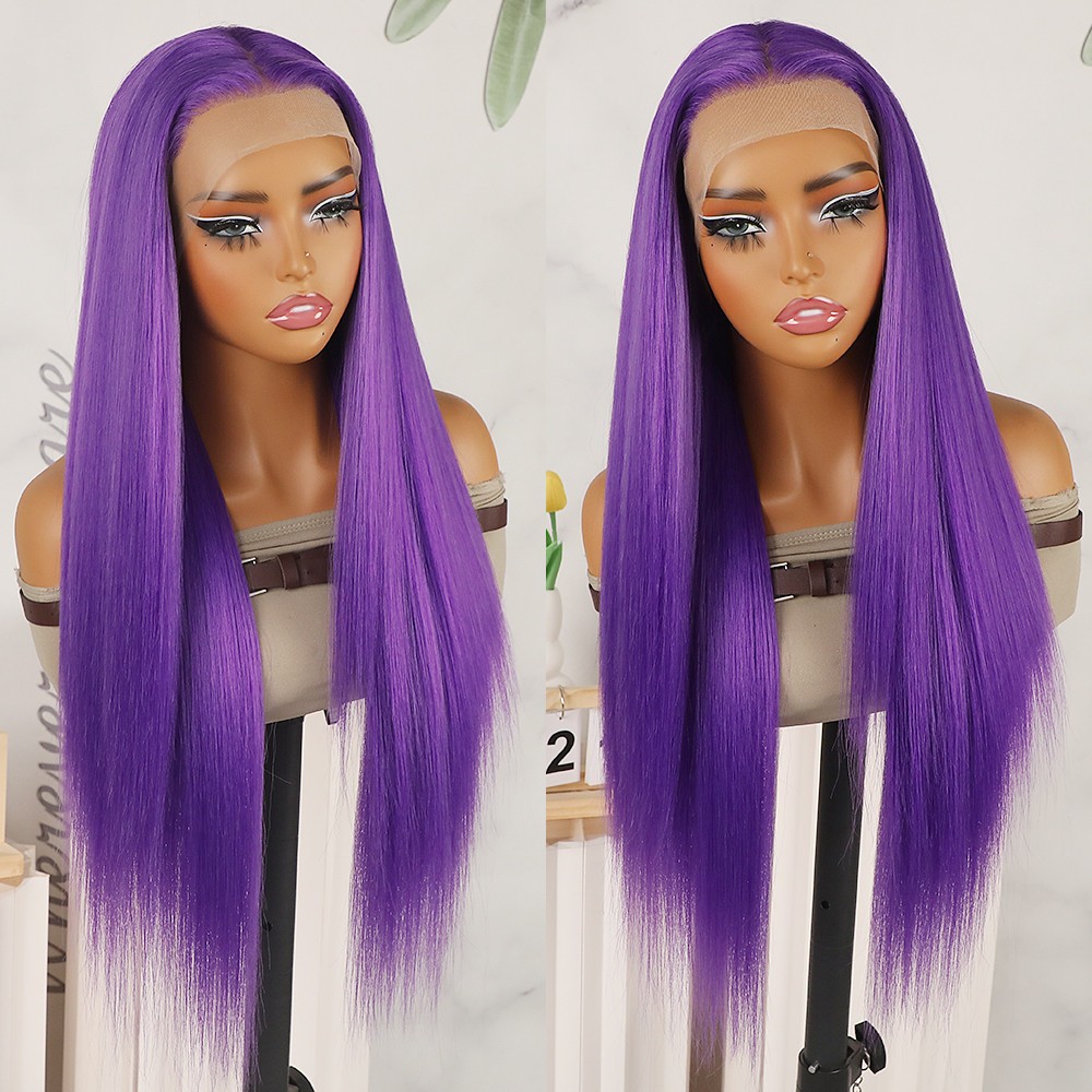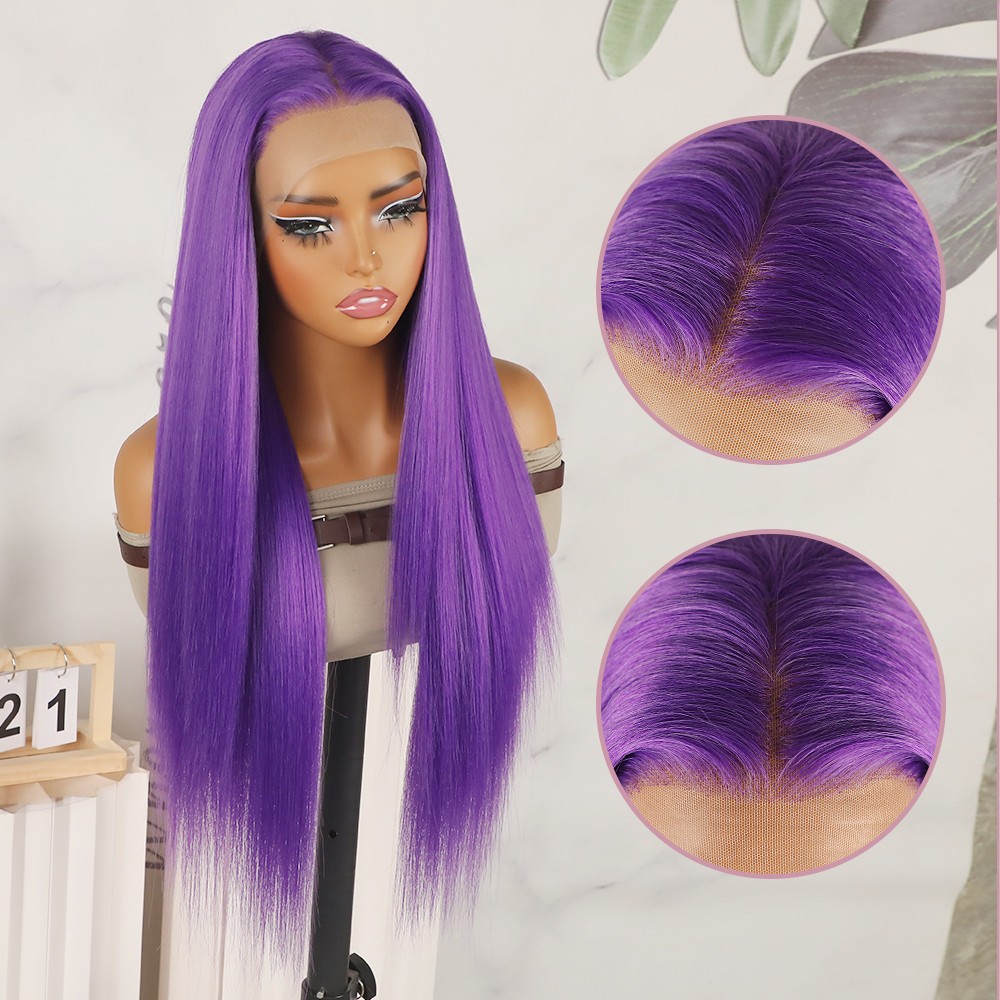 Purple Lace Front Wigs Long Straight Hair Heat Safe Pre Plucked Natural Hairline