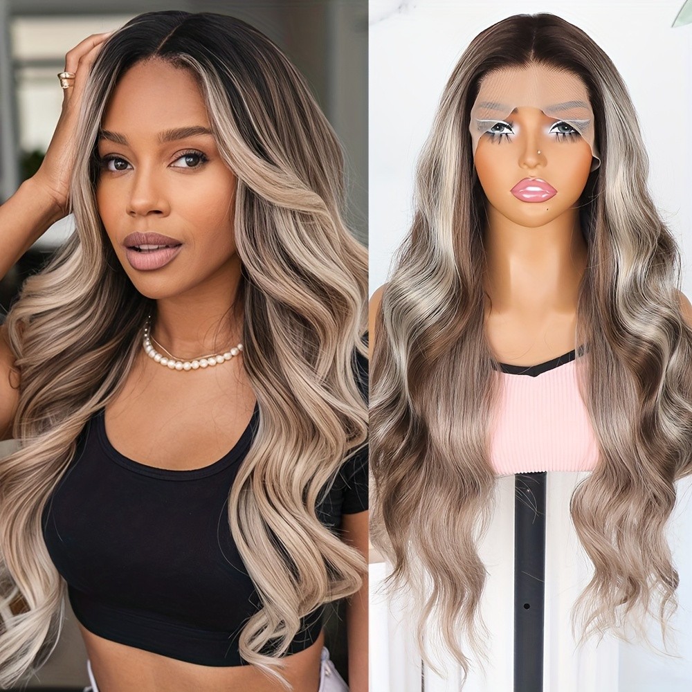 как выглядит Natural Brown Blonde Mixed Color Lace Front Wigs Long Body Wave Hair Women Party фото
