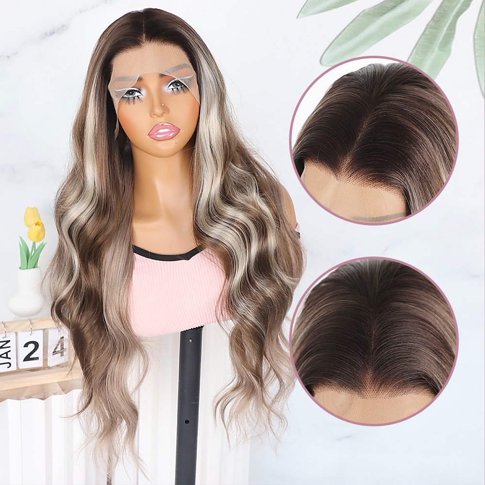 Natural Brown Blonde Mixed Color Lace Front Wigs Long Body Wave Hair Women Party