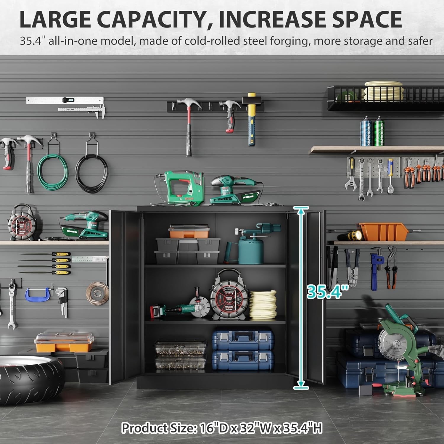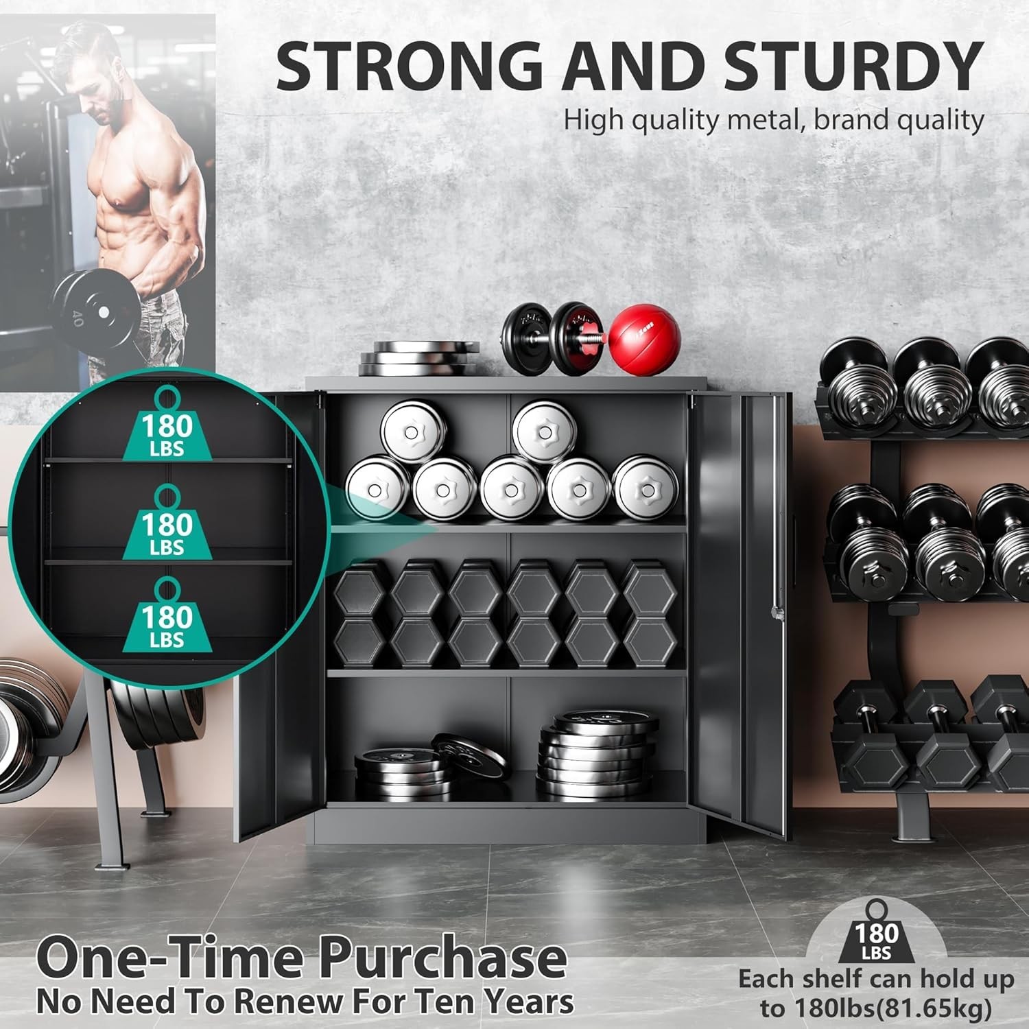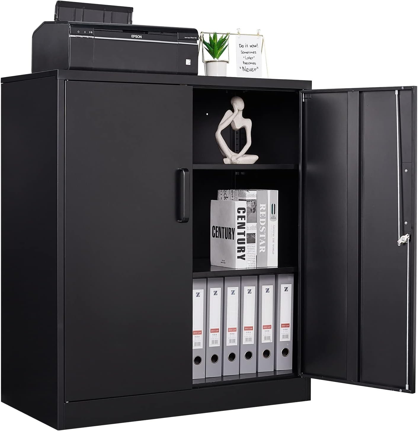 Metal Storage Cabinet Locked Steel Cabinet with 2 Adjustable Shelves,Office Ca..