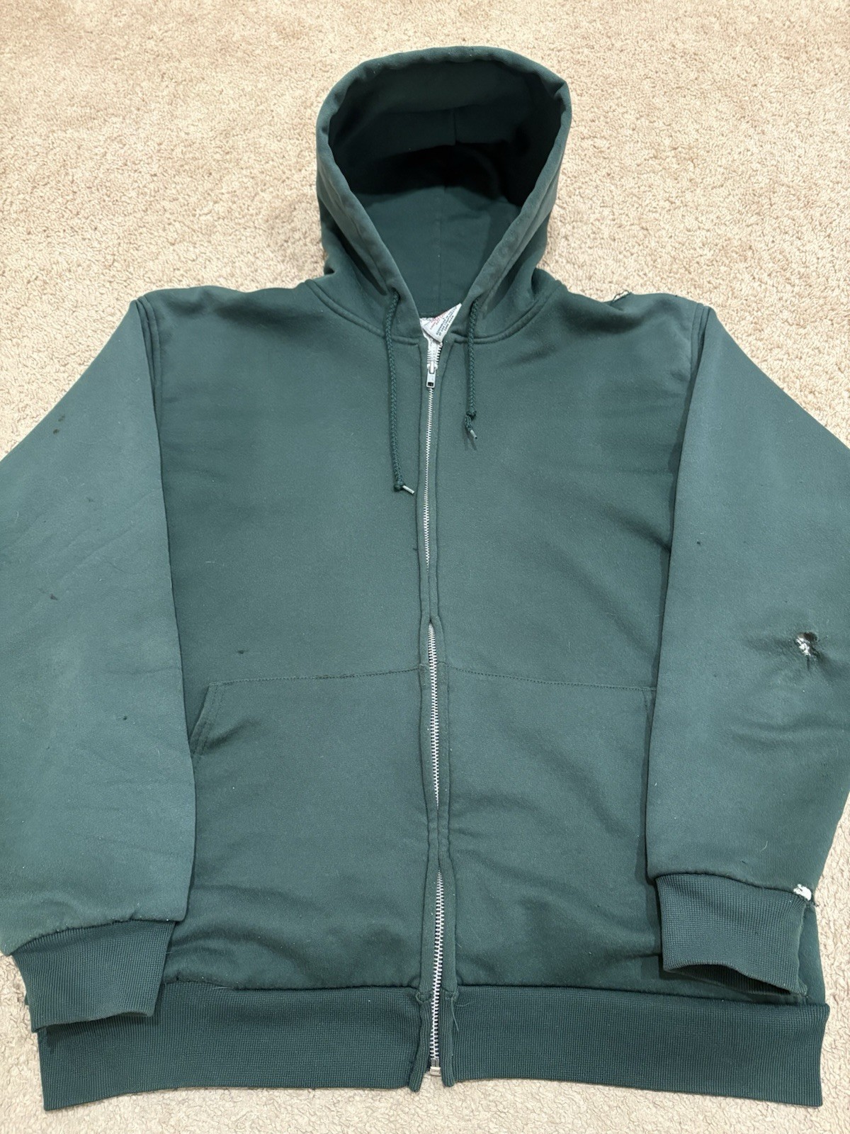 Vintage Pluma Men s Thermal Lined Green Zip-Up Hoodie Size Large