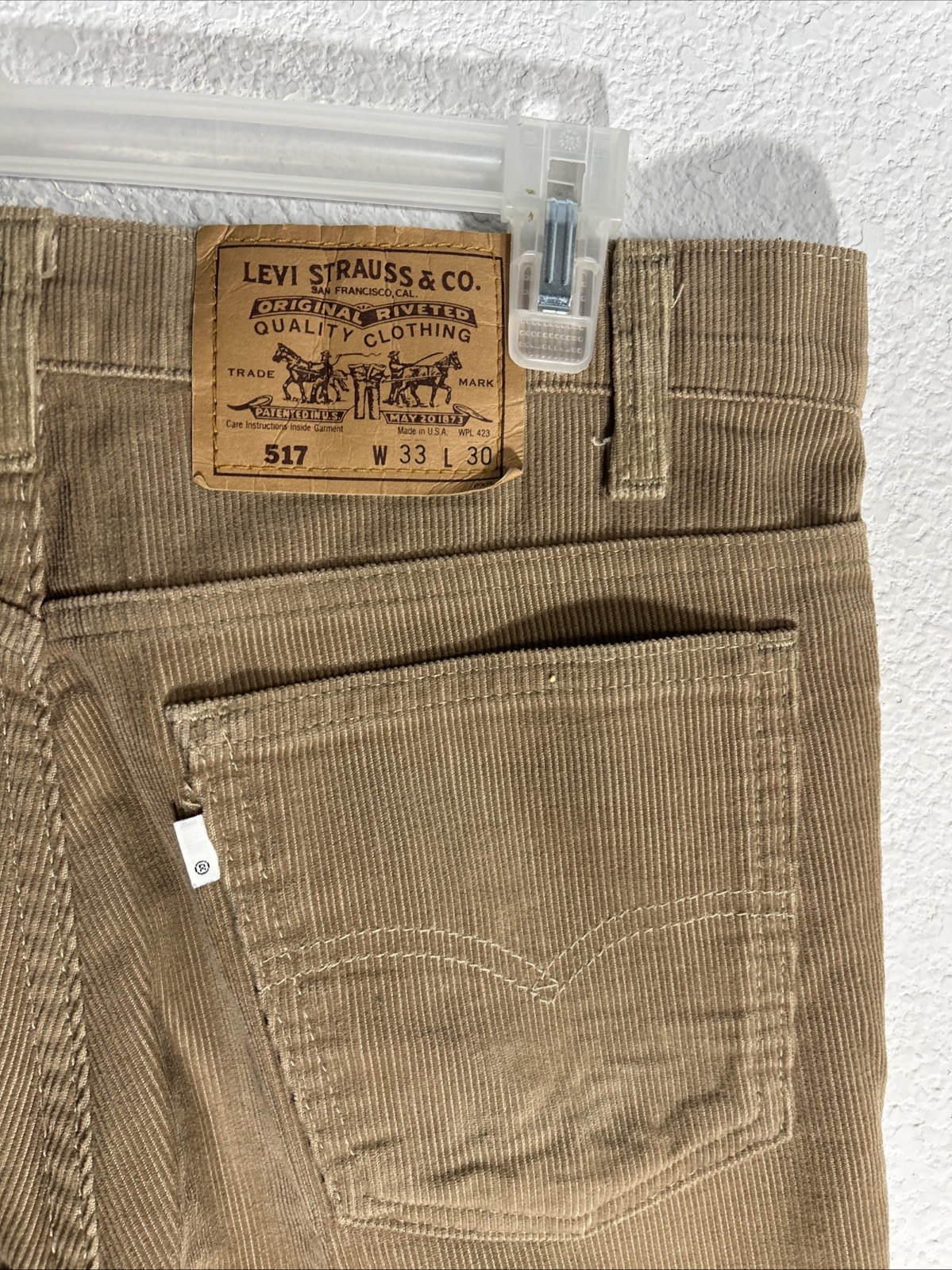 Vintage Levis 517 Pants Mens 33x30 Beige 80s Corduroy Bootcut Talon USA Made