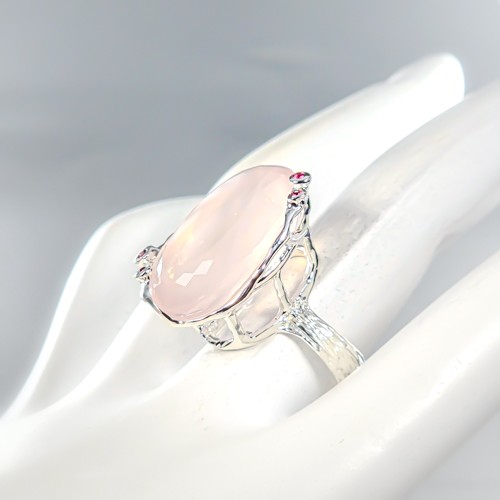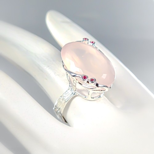как выглядит Handmade 32 ct Natural Rose Quartz Ring 925 Sterling Silver Size 8 /R441067 фото