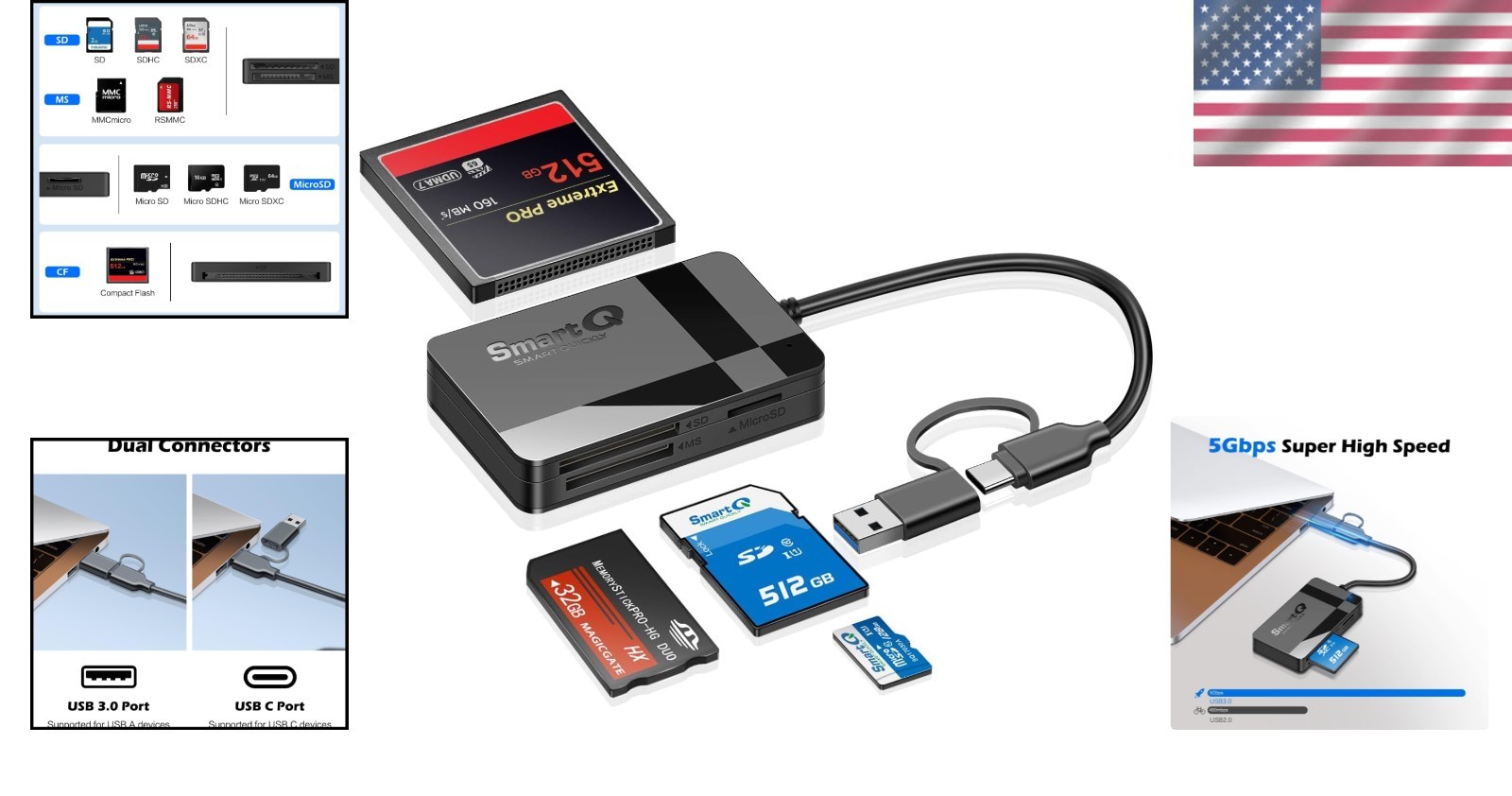 High-Speed Multi-Card USB C USB 3.0 Reader - Compact and Compatible