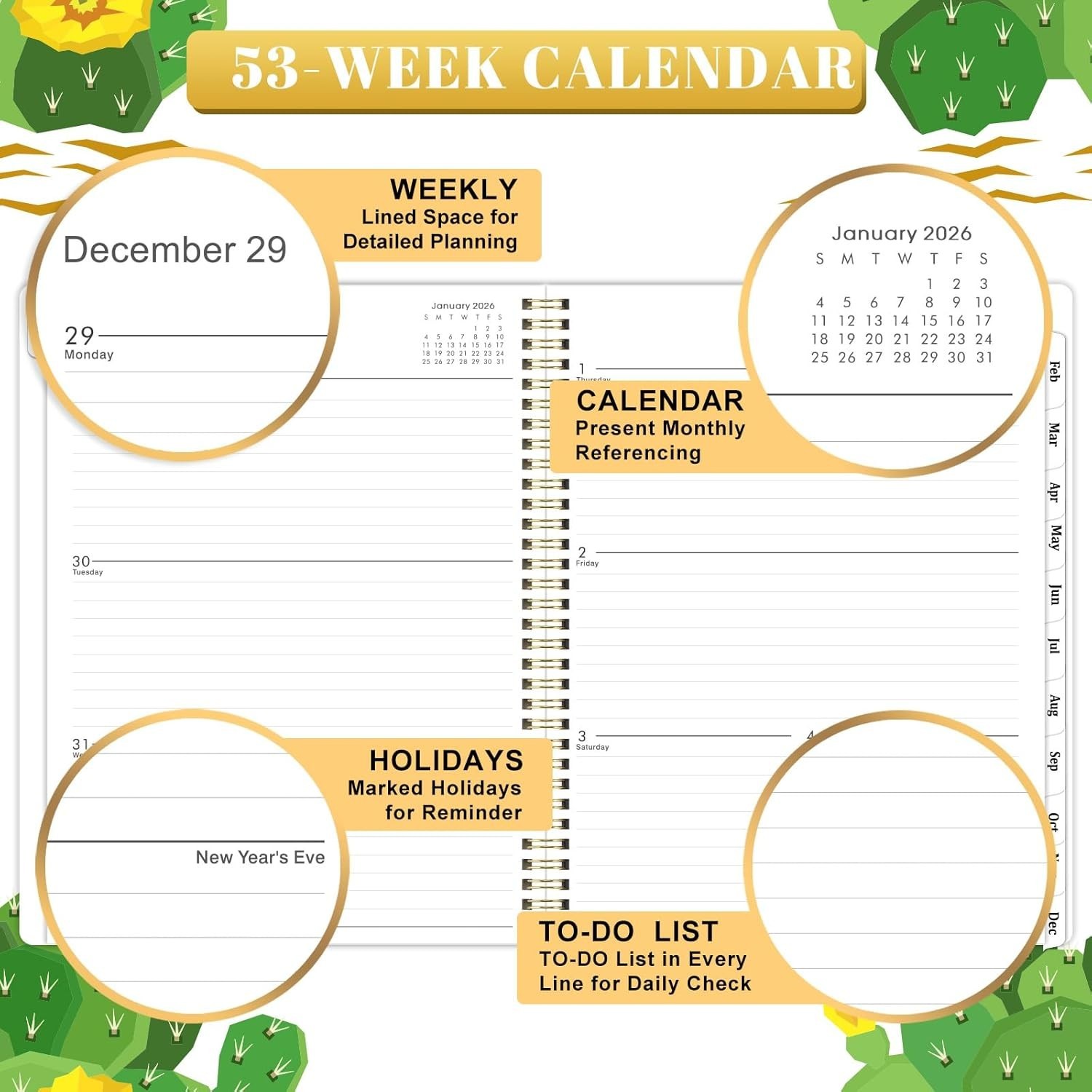 Vibrant 2026 Weekly and Monthly Planner with Tabs, Hardcover, 9 11, Multicolor