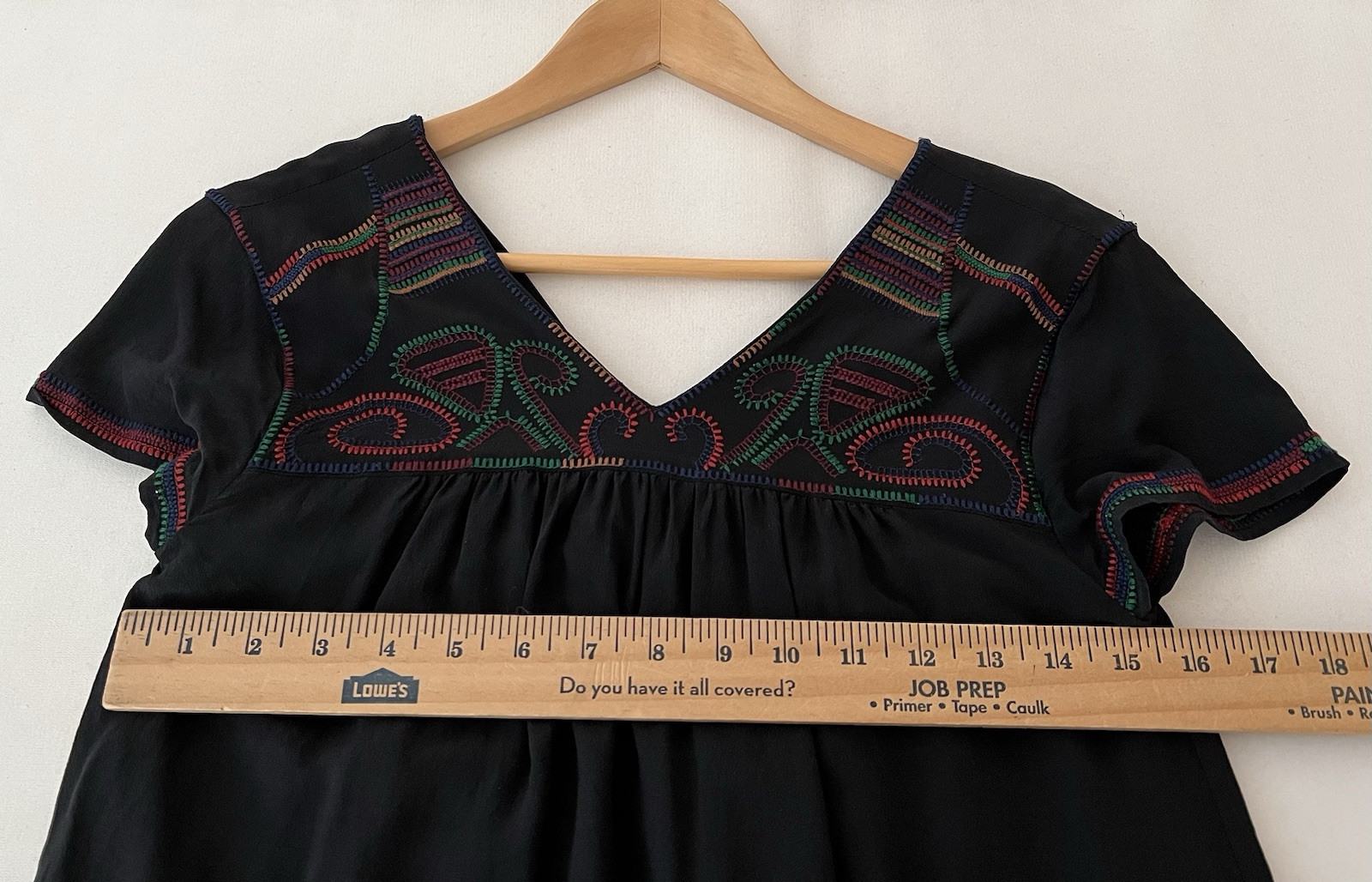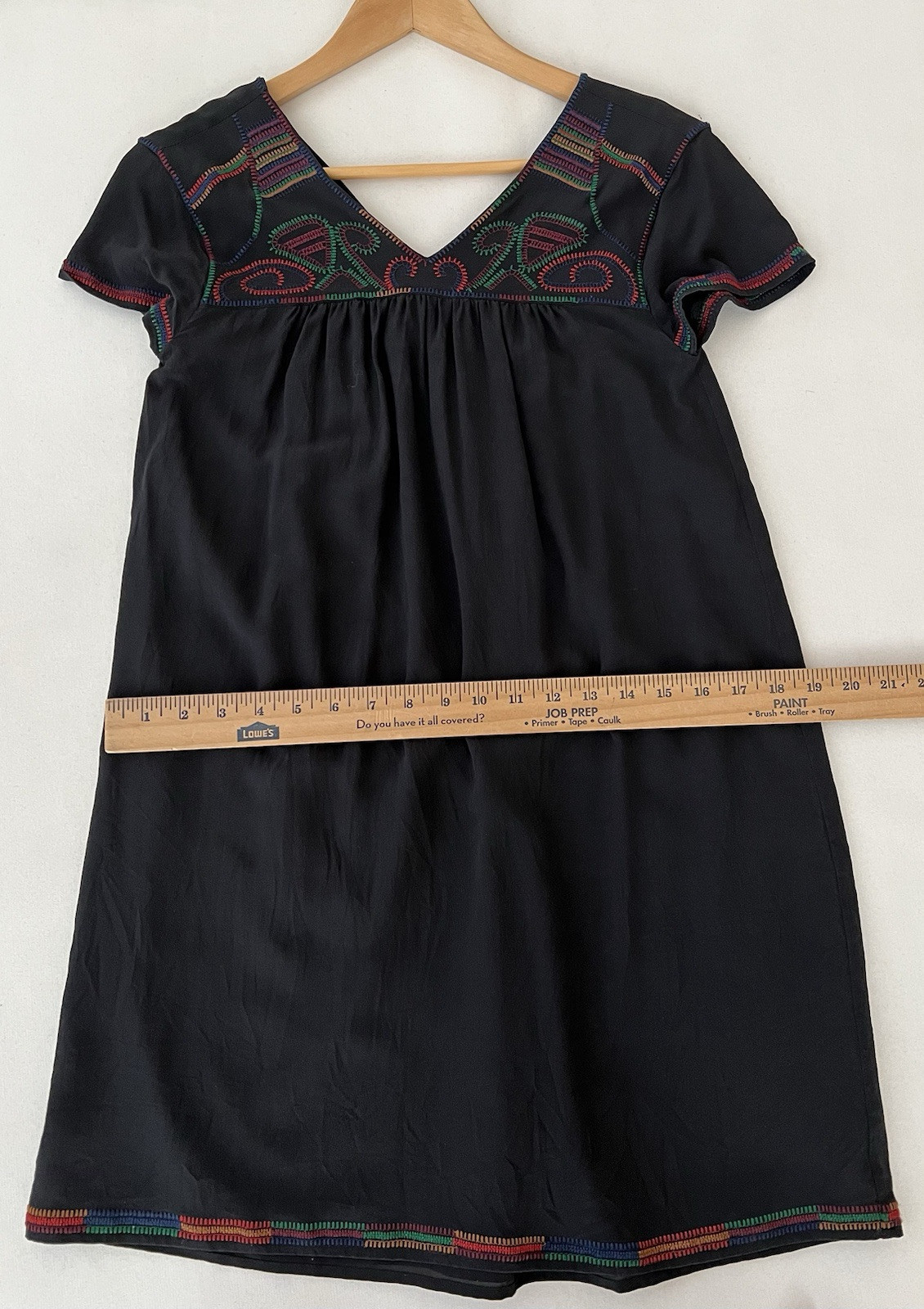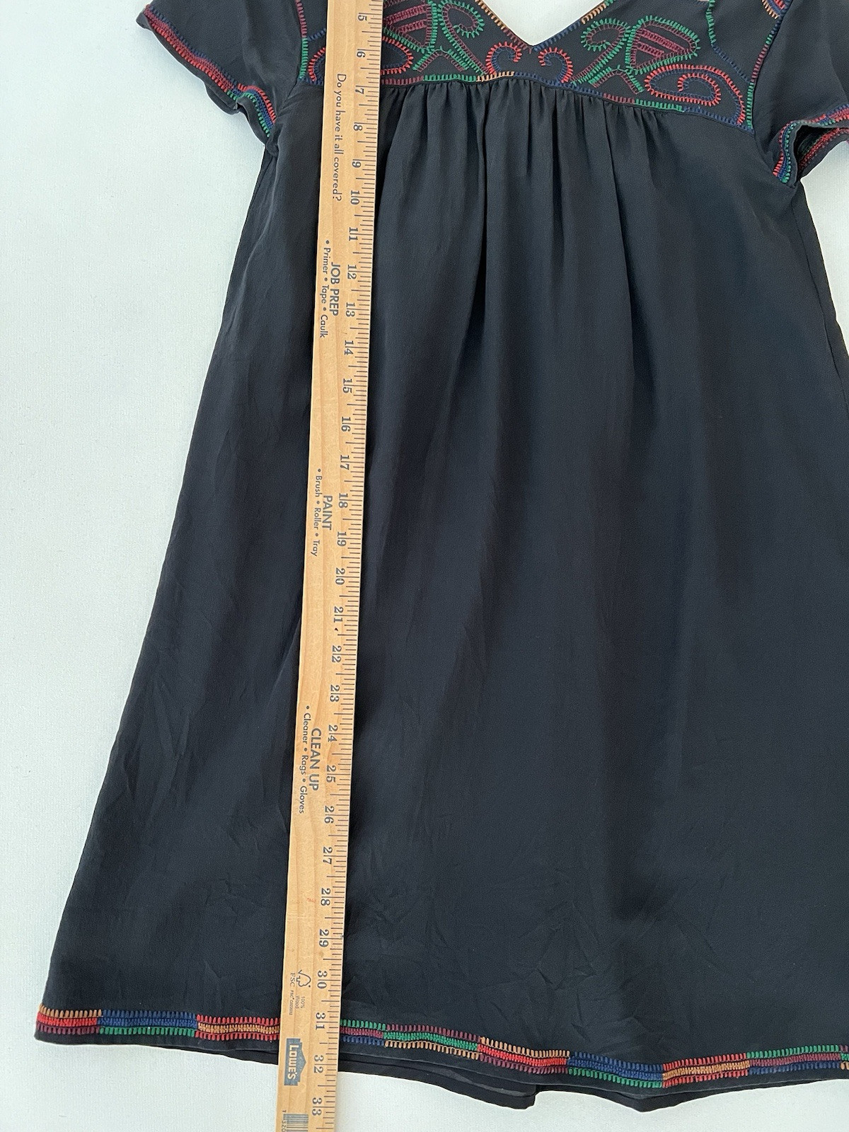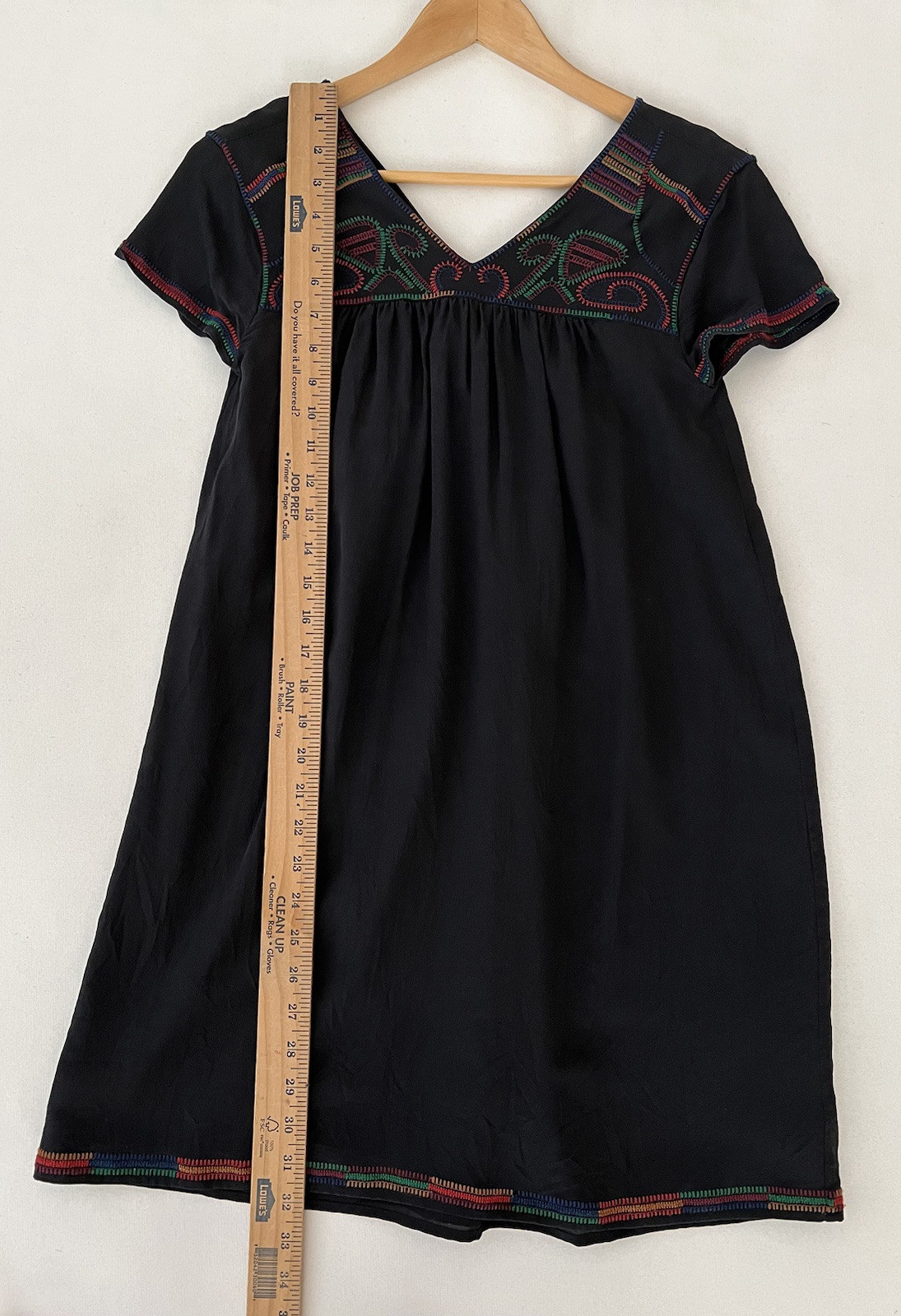 как выглядит MADEWELL Black Silk Embroidered Colorstitch Shift Dress Popover Sz XS Black Goth фото