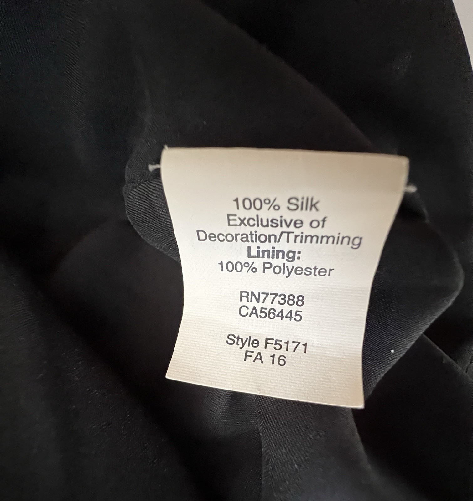 Garment Care: Dry Clean Only