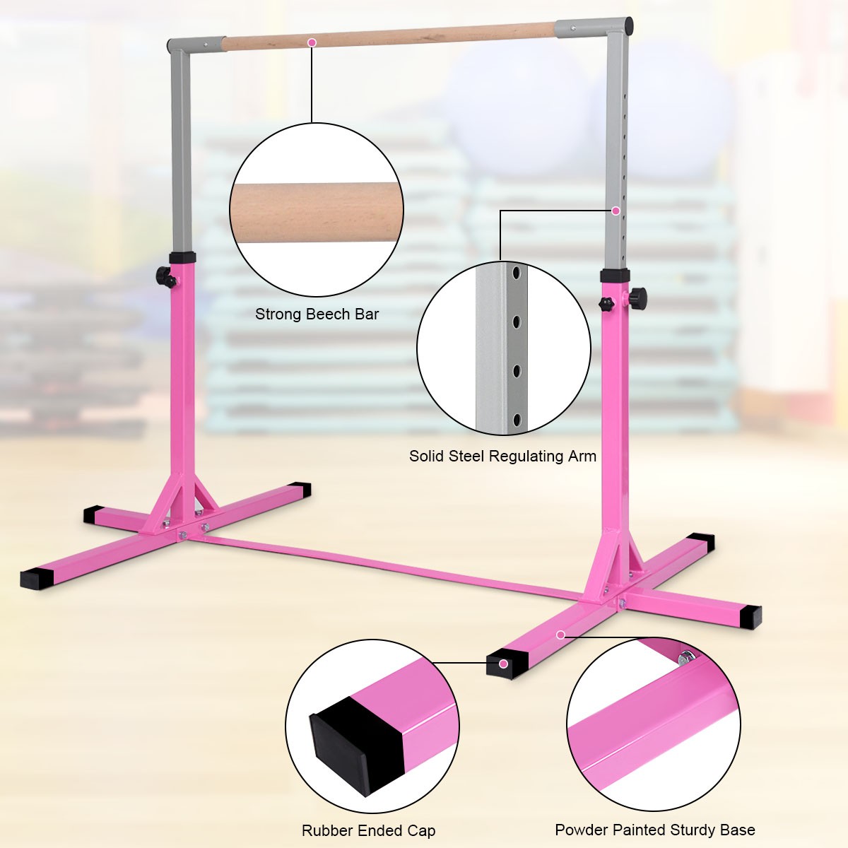 Costway Adjustable Steel Horizontal Training Bar Gymnastics Junior Home Practice