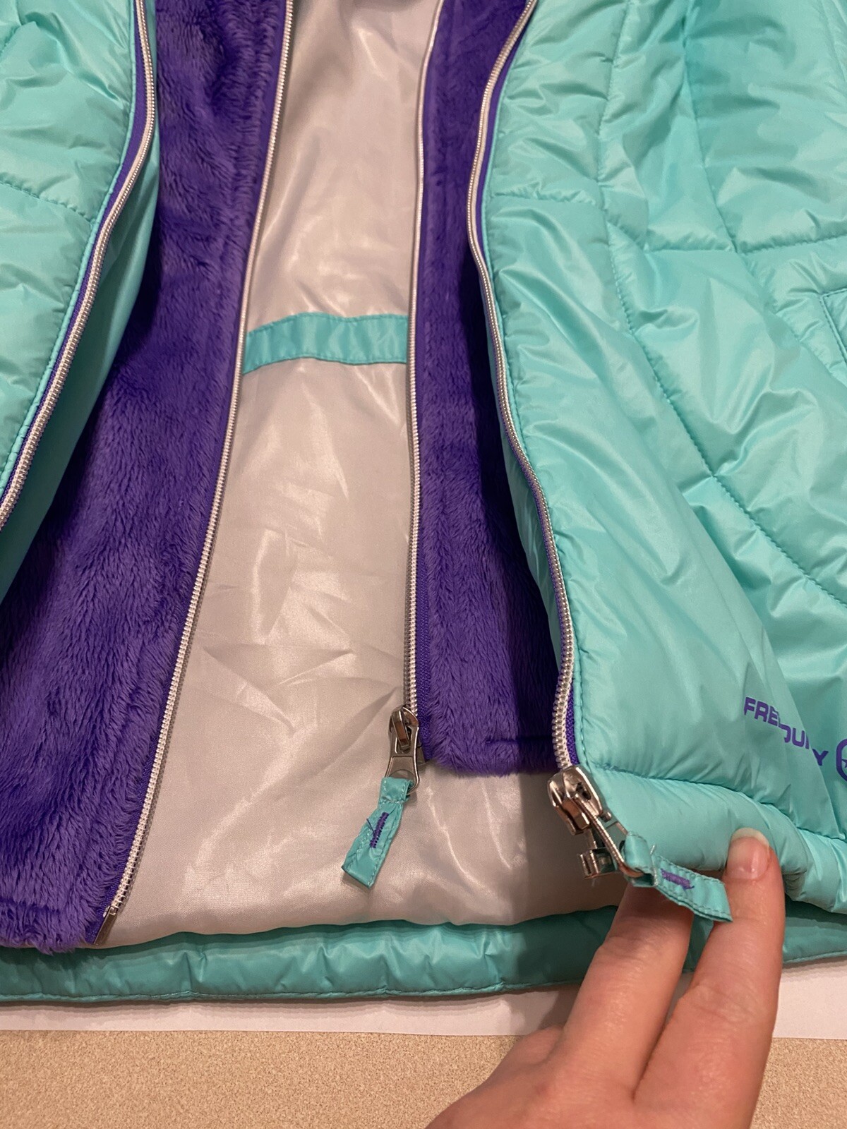 как выглядит Free Country Girls Jacket L 14 Removable Hood Very Warm Purple Aqua Blue фото