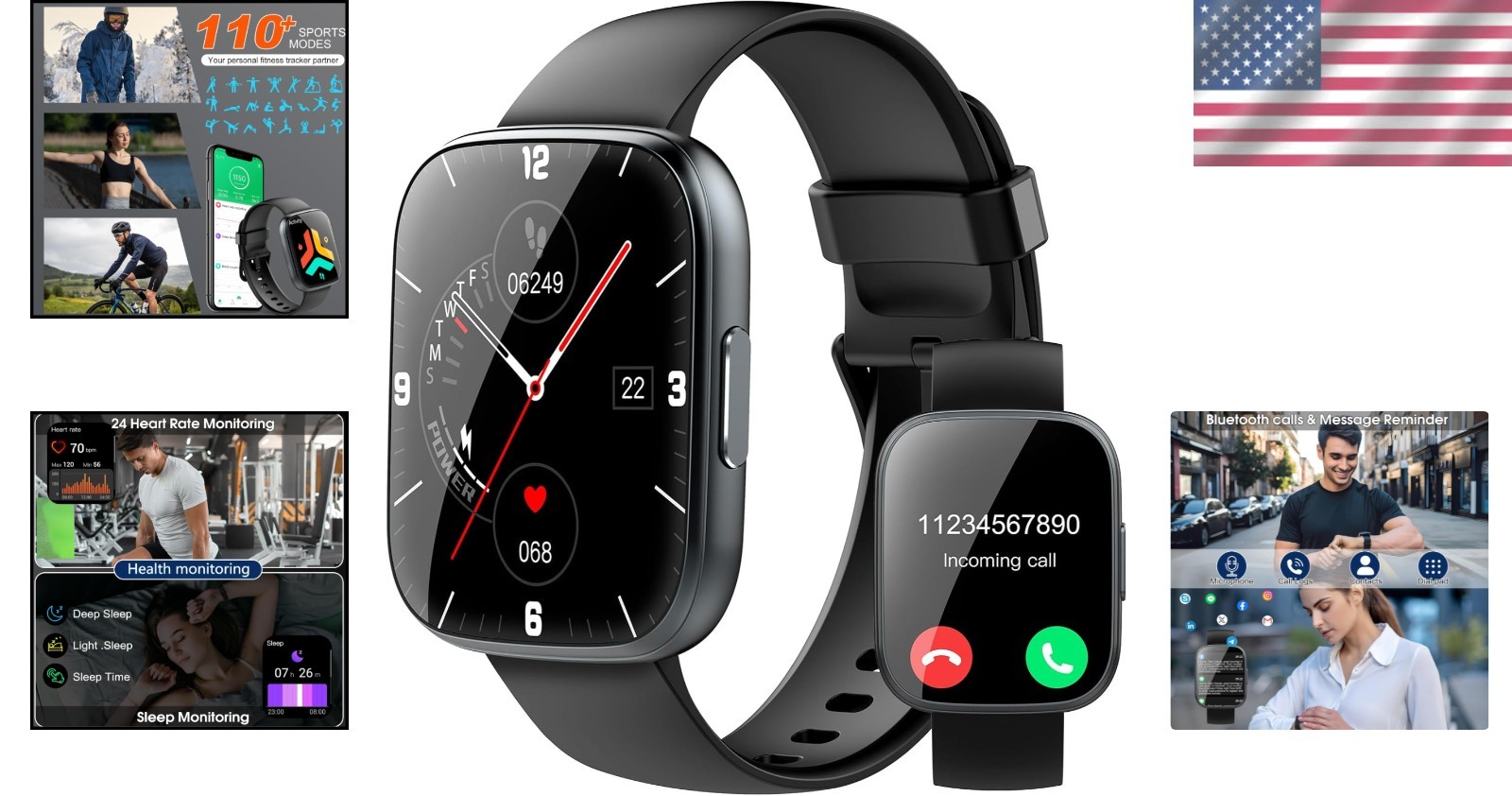 Особенности: Bluetooth Enabled, Bluetooth Call, Heart Rate Monitor, Sleep Monitor, Smart Notifications, Music Control, Camera Control, Sedentary Reminder, Vibration Alerts