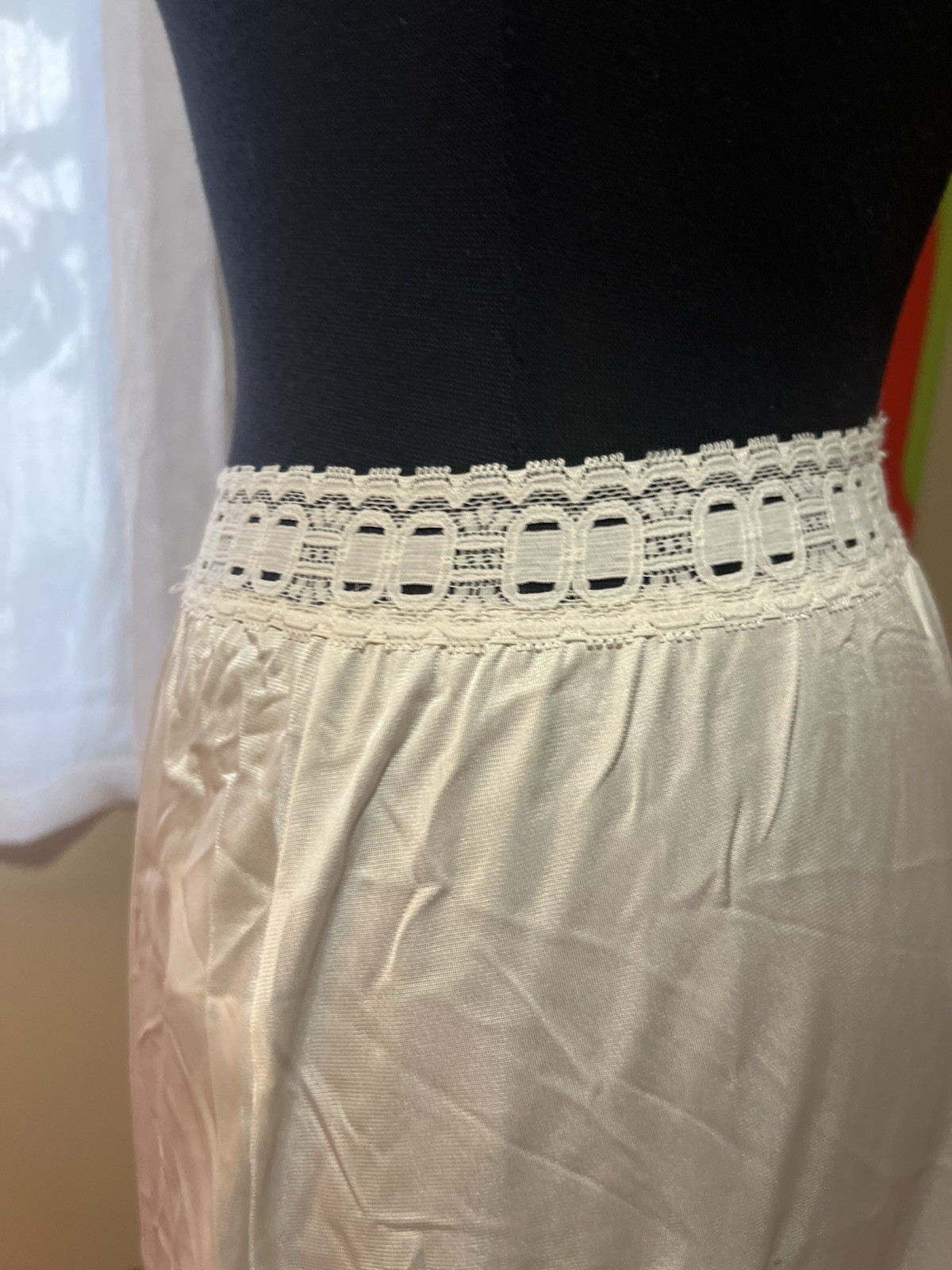 как выглядит Vtg Olga Secret Hug Half Slip Medium Tall Pearly White Elastic Lace фото