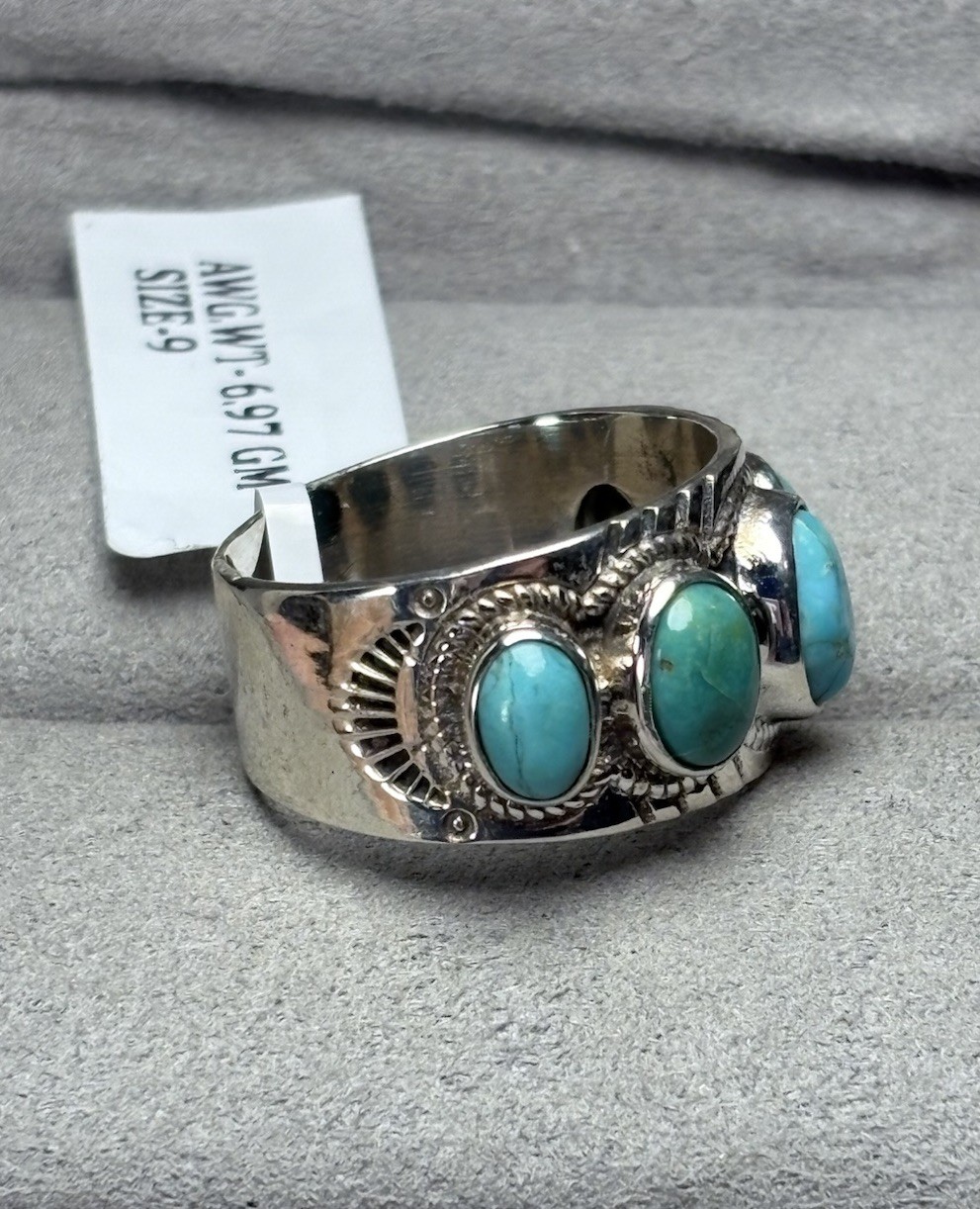 Native American Style 925 Sterling Silver 5 Stone Turquoise Band Ring Sz 9