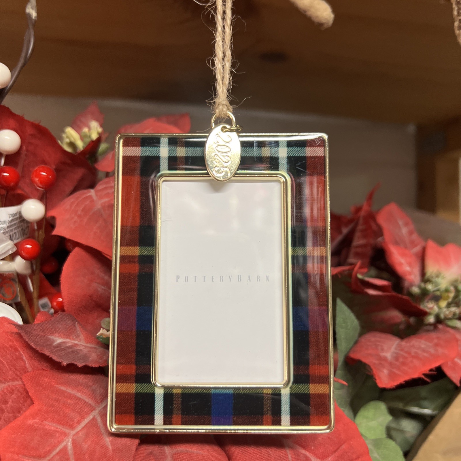 как выглядит Pottery Barn 2025 Rectangle Red Plaid Christmas Dated Charm Frame Ornament NIB фото