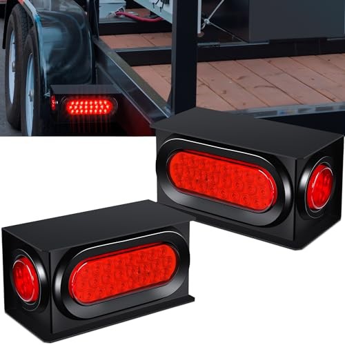 Trailer Lights Welded Mount Steel Boxes Kit w/6 inch LED Oval Tail Lights 2