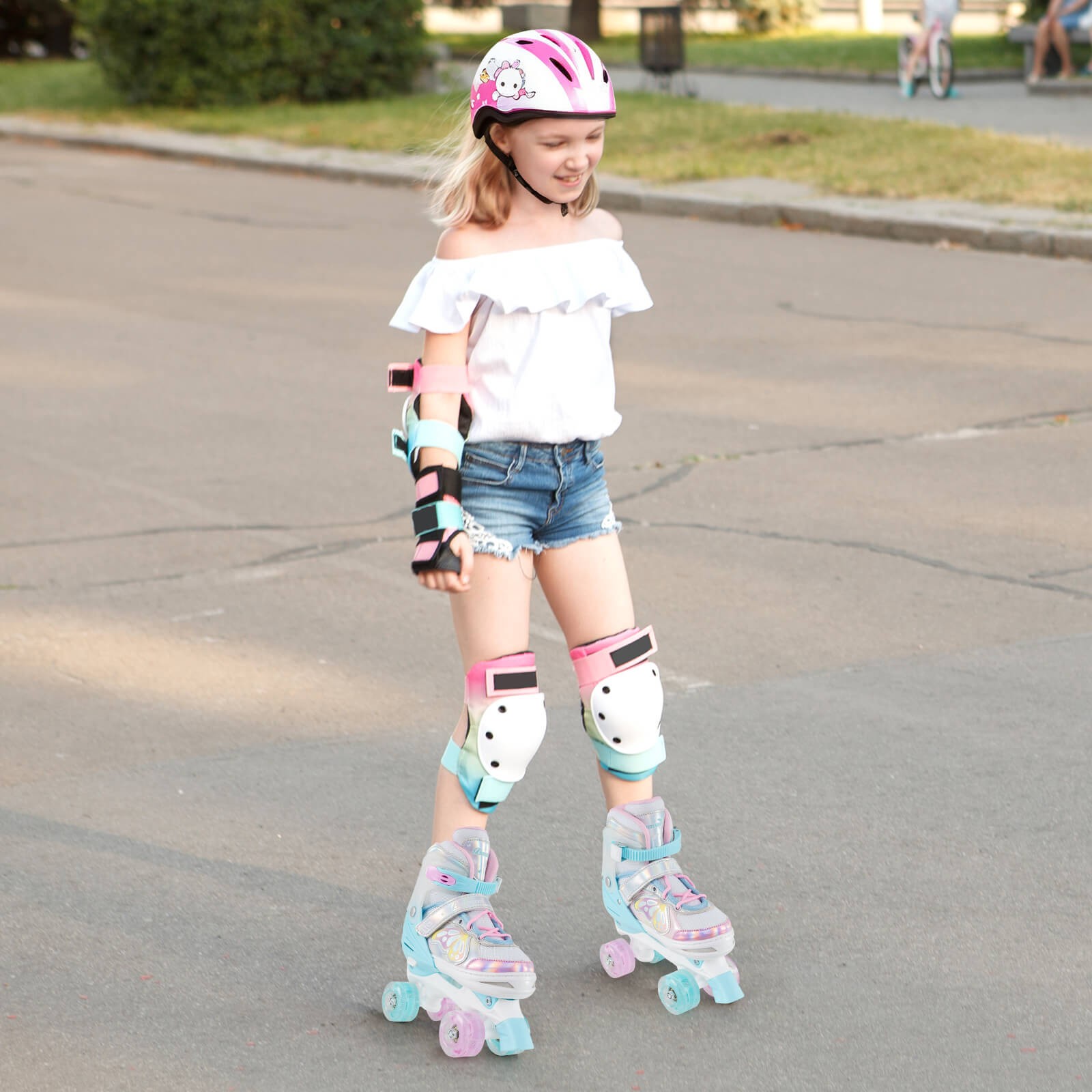 4 Sizes Adjustable Quad Skates w/Light-up Wheels Safety Protection for Ages 13