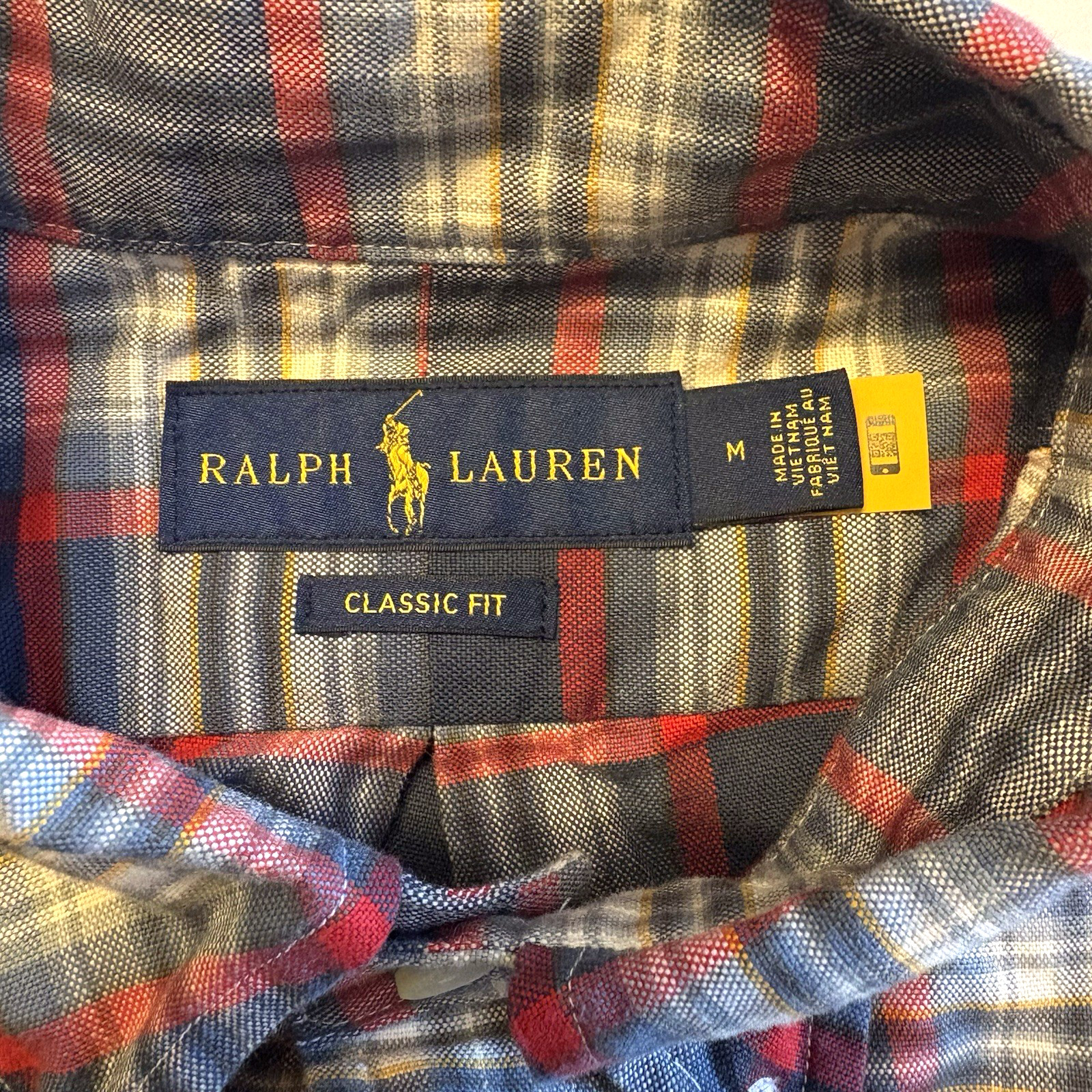 Ralph Lauren Classic Fit Red Blue Plaid Shirt Mens Medium Button Down Casual EUC