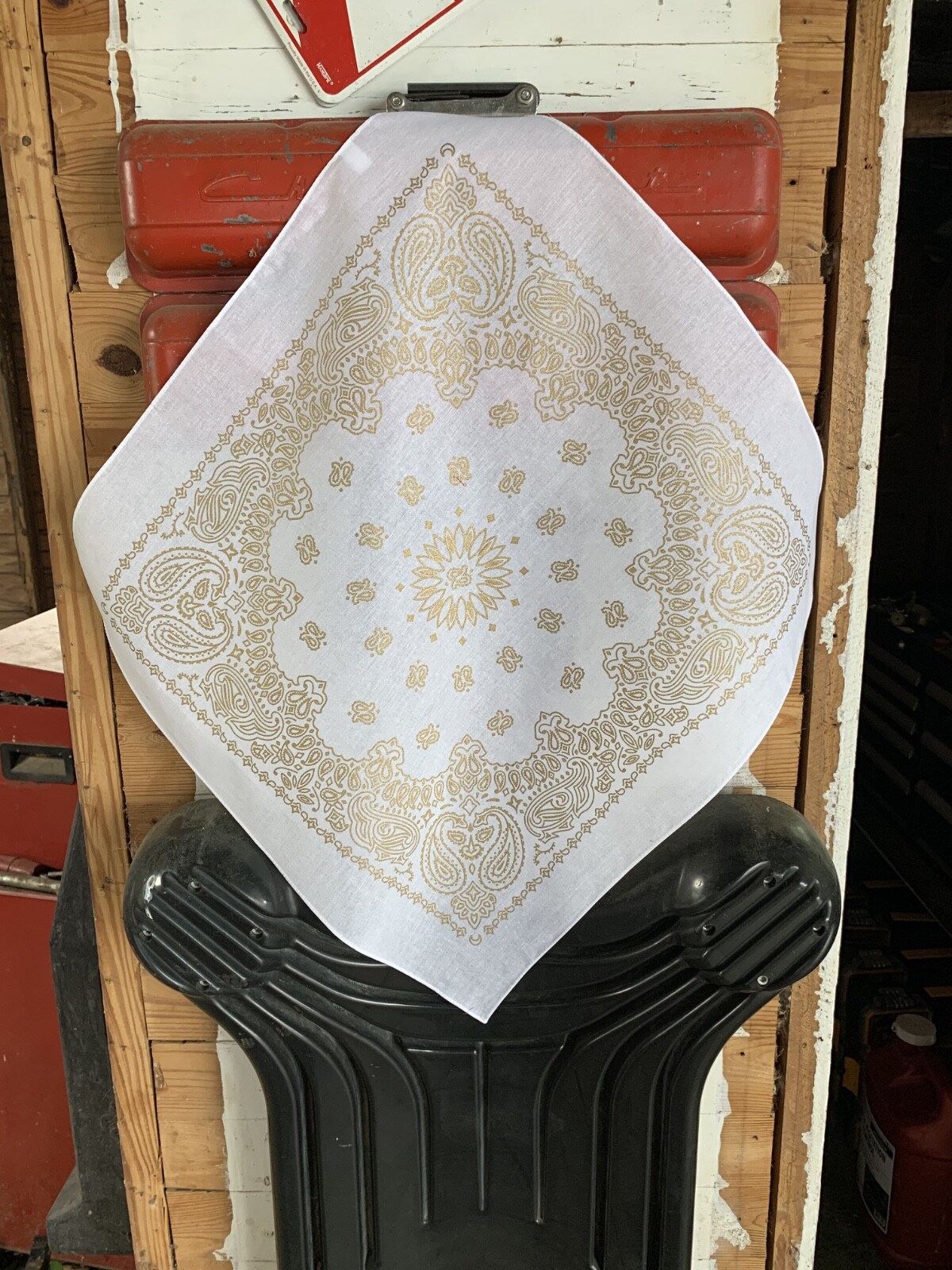 как выглядит New White Gold Metallic Paisley 22x22" Bandanna 100 Cotton Made in India фото