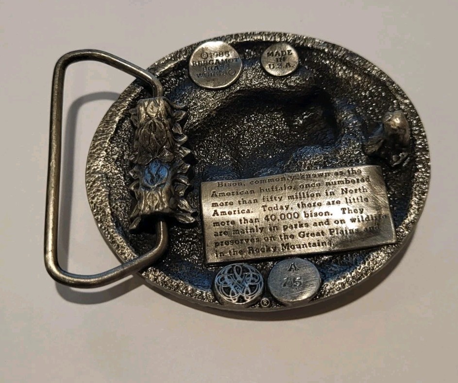 как выглядит BERGAMOT Belt Buckle BISON AMERICAN BUFFALO 1985 3D Brass Works MADE USA фото