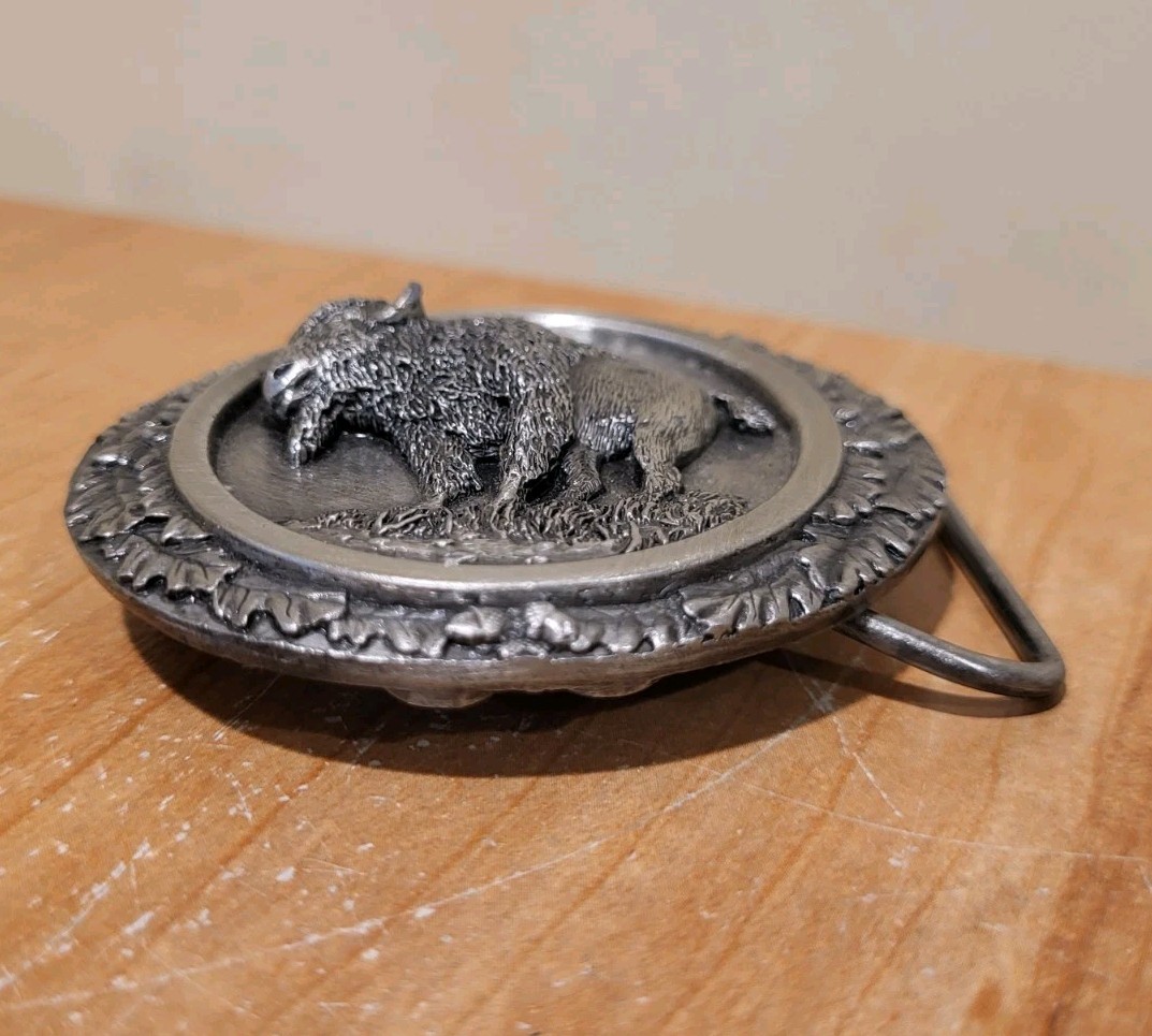 BERGAMOT Belt Buckle BISON AMERICAN BUFFALO 1985 3D Brass Works MADE USA