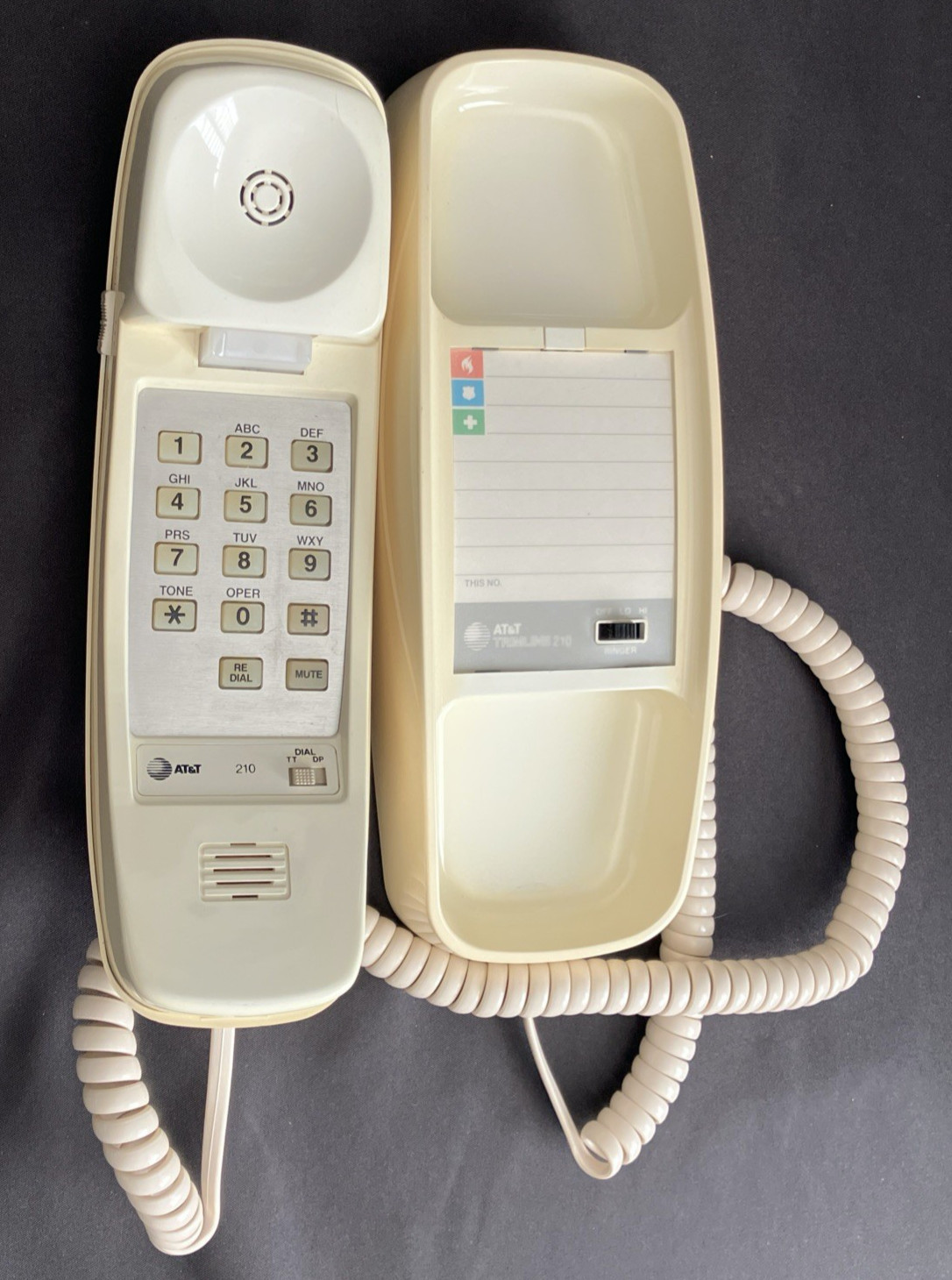 • Vintage AT T 210 Slimline Corded Telephone Cream Push Button Tested Working
