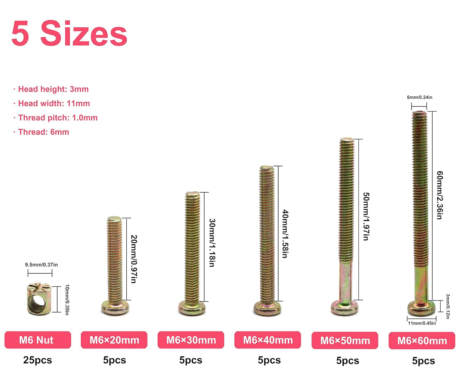 • M6 Baby Crib Hardware Replacement Kit, 50Pcs Socket Cap Bolts Barrel Nuts Assor