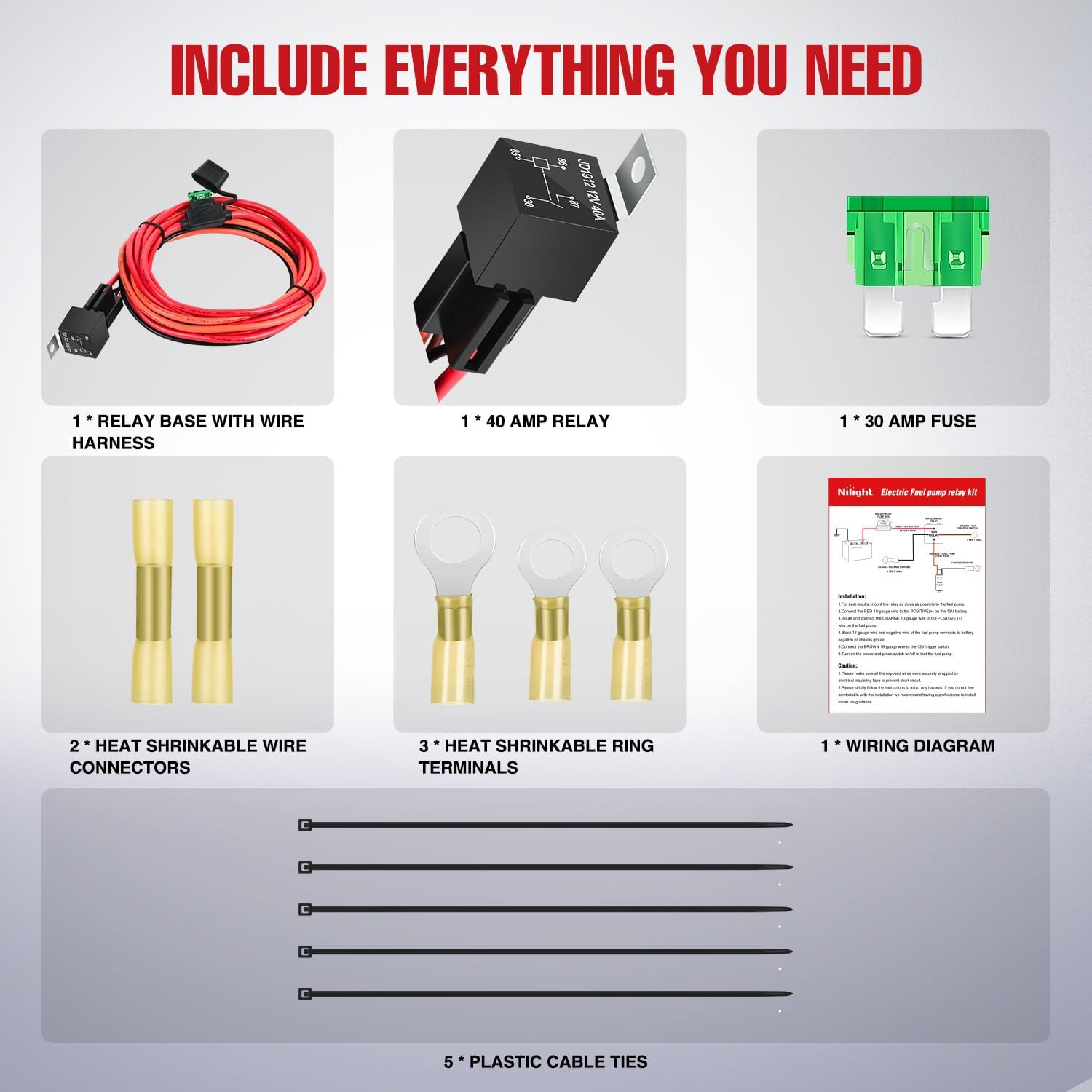 Electric Fuel Pump Relay Kit Wiring Harness 40 AMP Waterproof Relay Heavy Duty 1