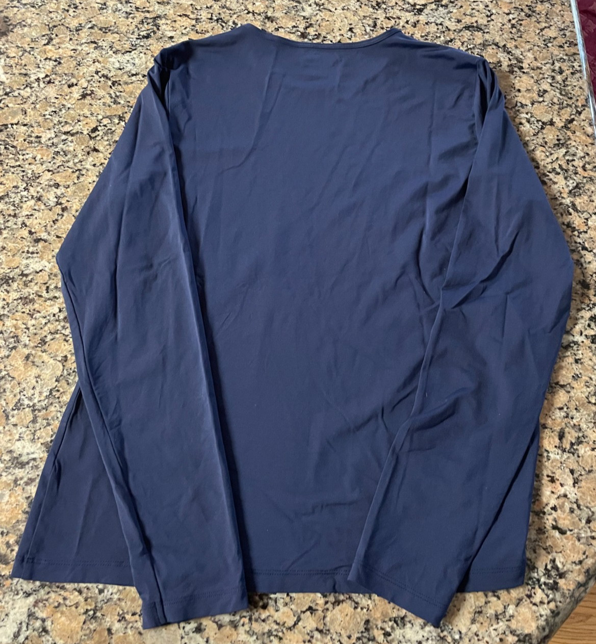 как выглядит Lands End Rash Guard Shirt Unisex Long Sleeve Navy Blue Youth Medium 10-12 фото