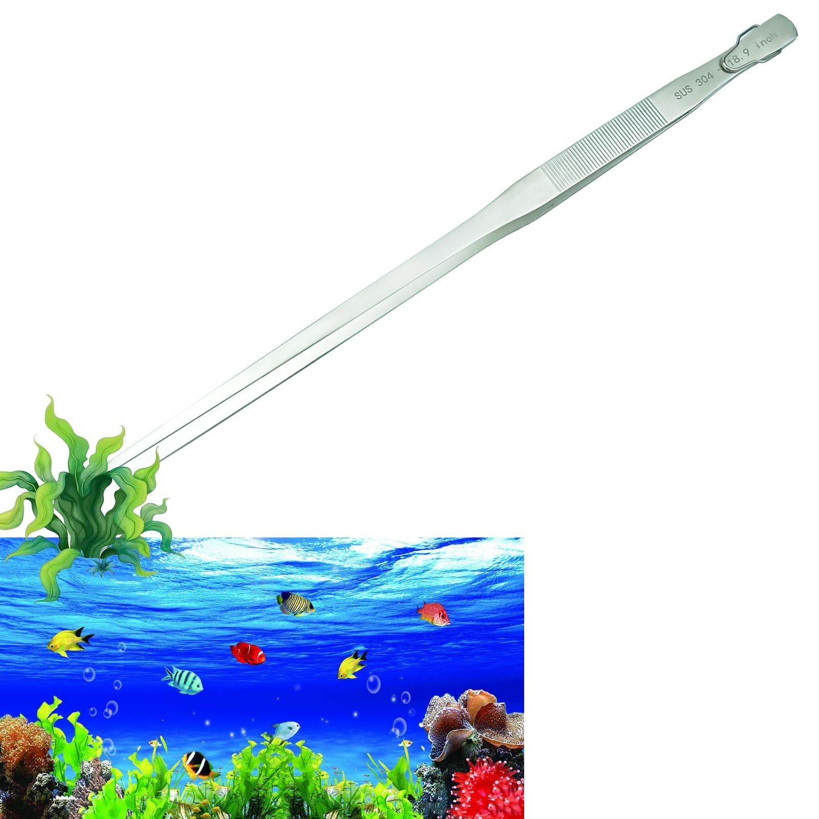 Extra Long 18.9 Aquarium Tweezers Hanger, Stainless Steel Feeding Tongs for A