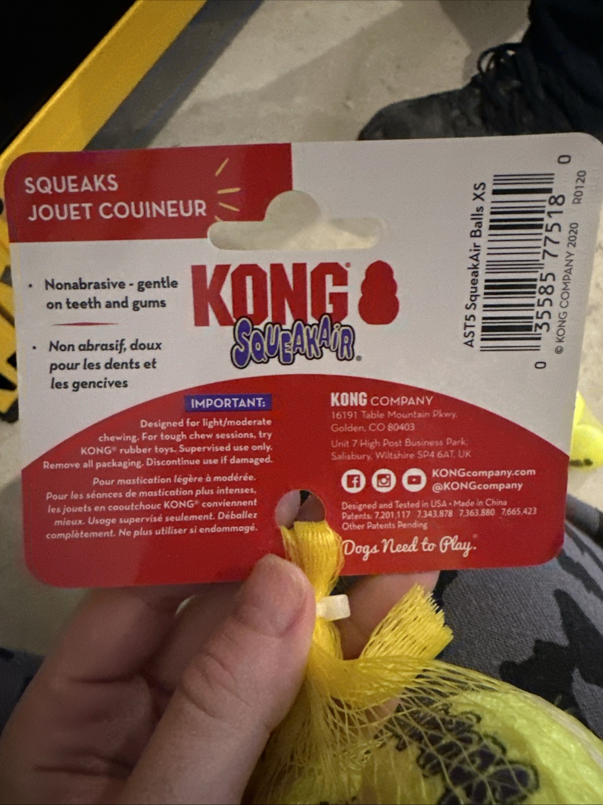 KONG SqueakAir Tennis Balls Pack of 3 Size XS, X-Small