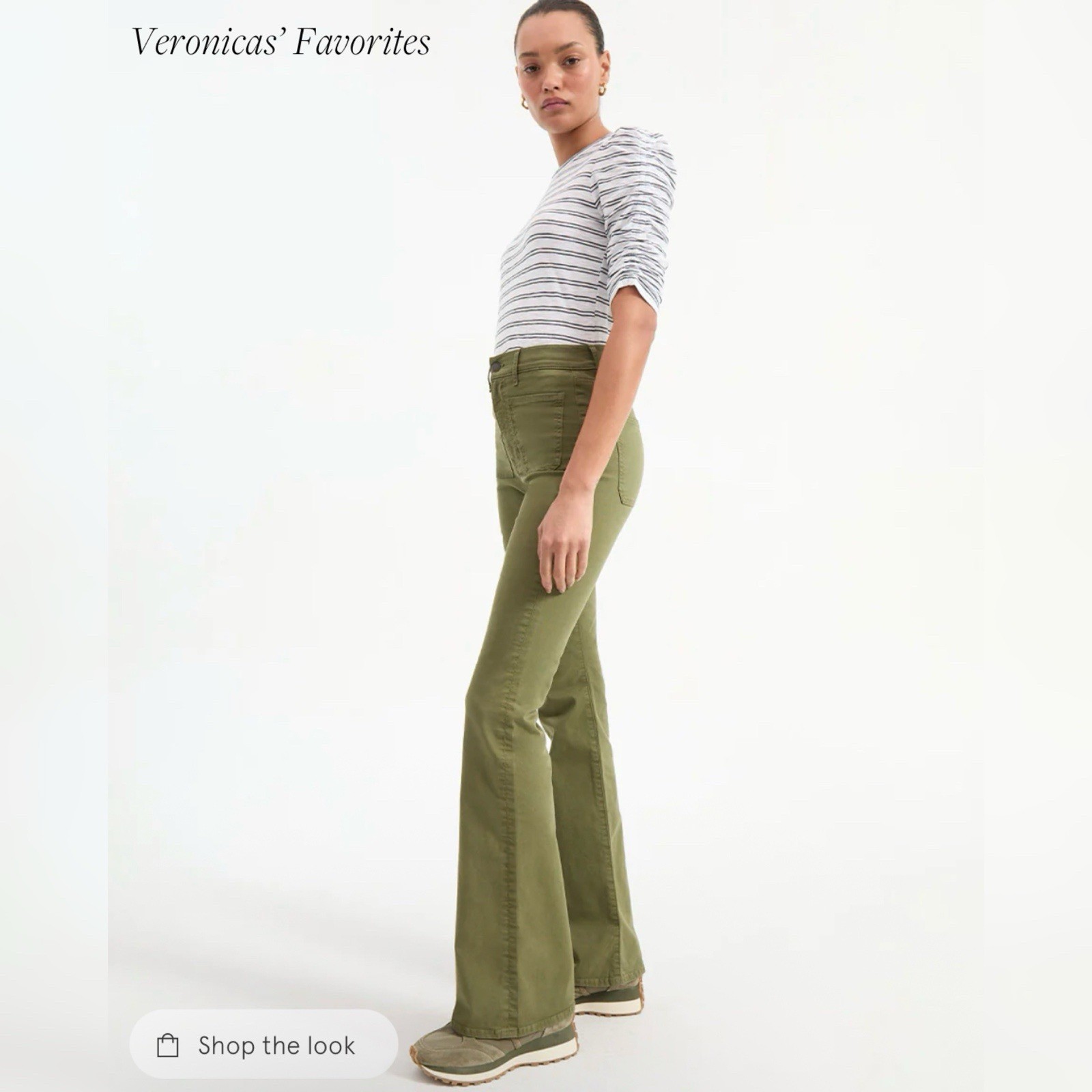 как выглядит Veronica Beard Beverly Patch-Pocket Skinny-Flare Twill Pant 27 Army Green фото