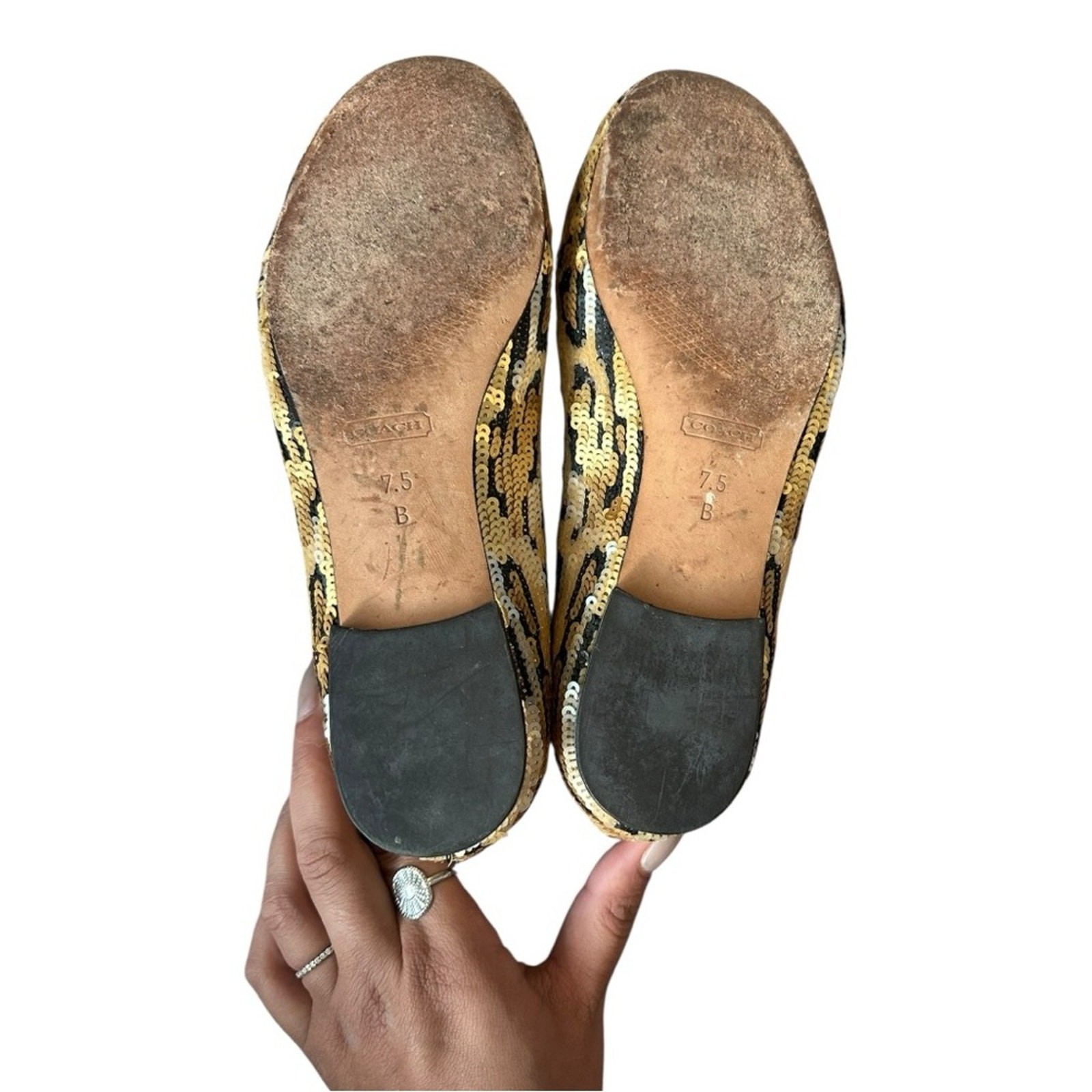 как выглядит Coach Women s Gold and Black Sequins Ballet Flats 7.5 фото