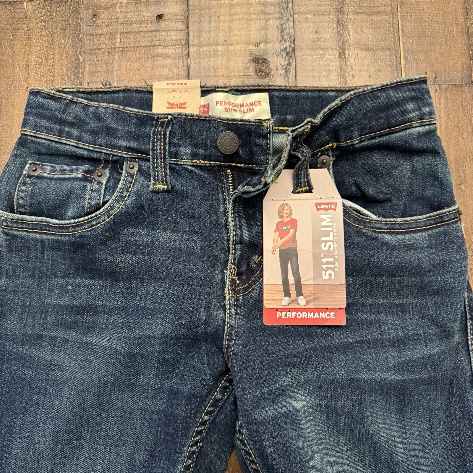 как выглядит Levis 511 Slim Denim Jeans Boys 10 Reg W24xL24.5 Blue Stretch Performance NWT фото