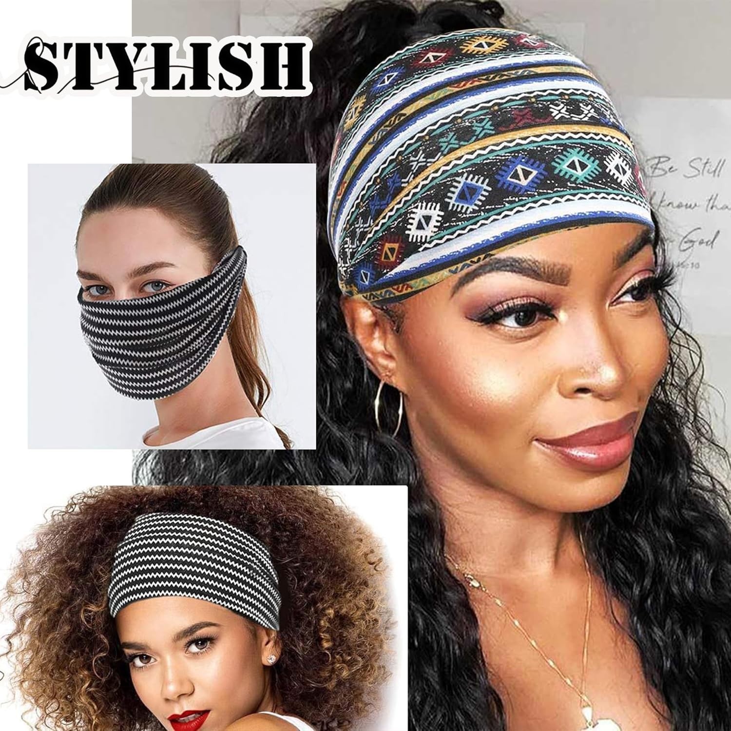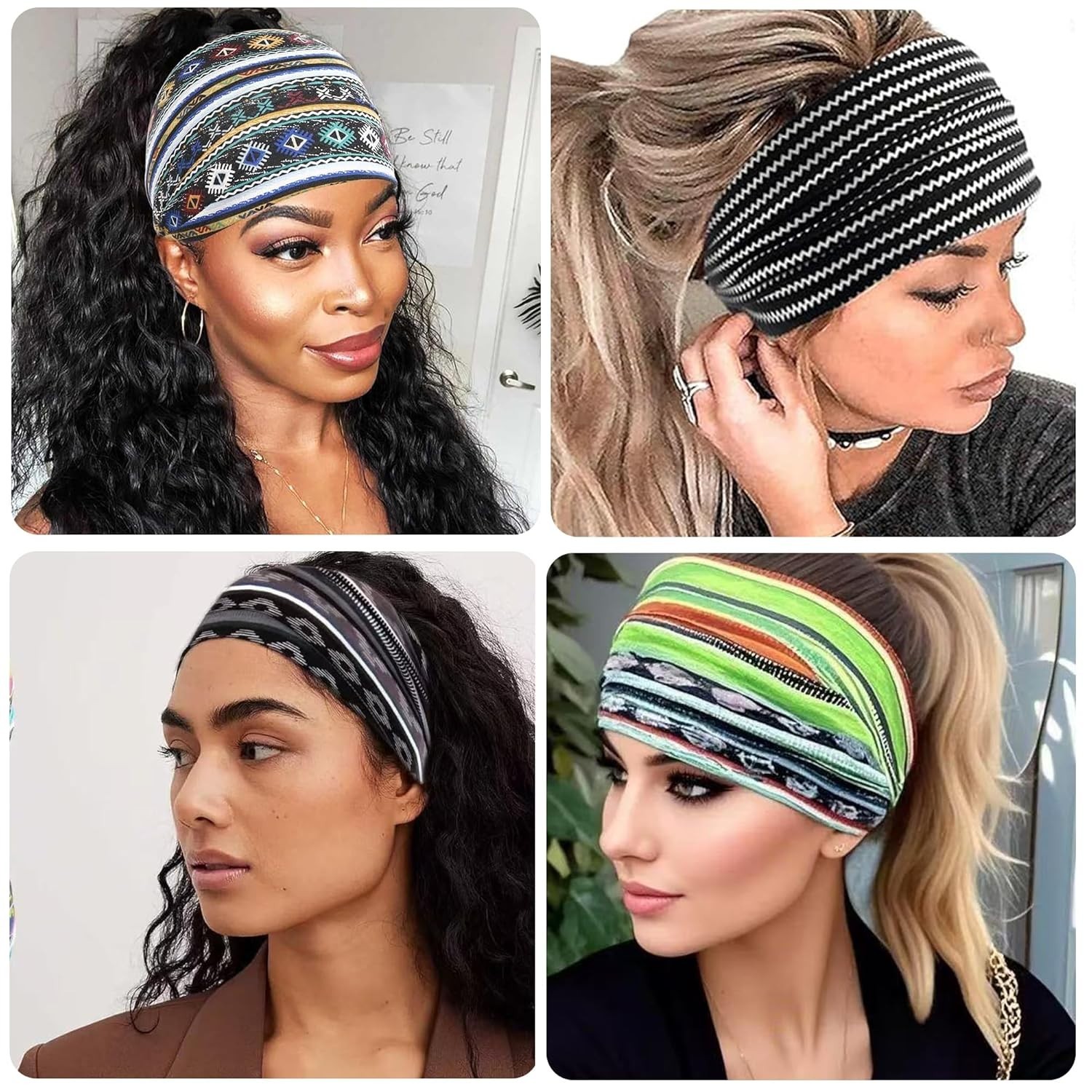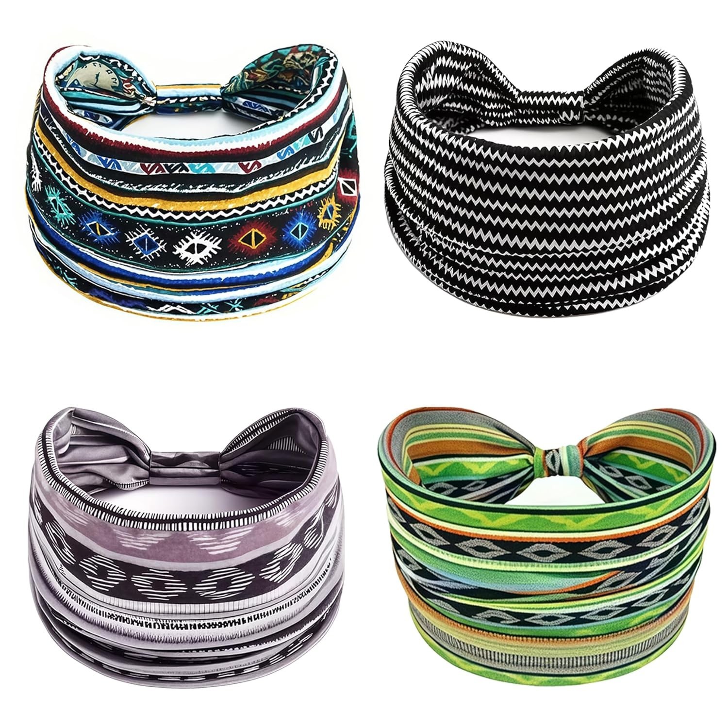 Wide Headbands for Women Non Slip Soft Fabric Hair Wrap, 4-Pcs Cloth Headbands