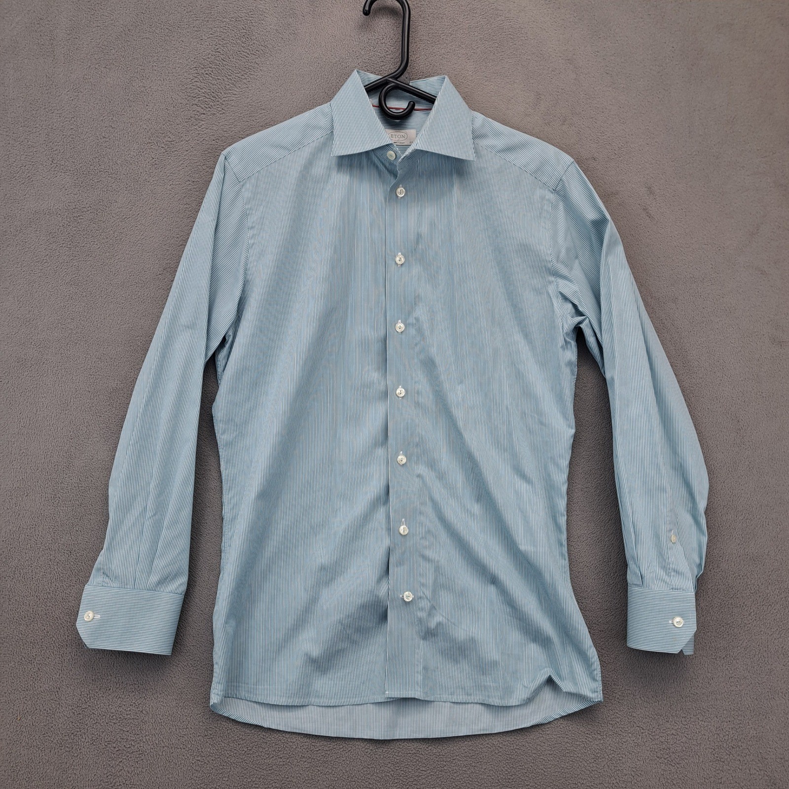как выглядит Eton Contemporary Striped Dress Shirt Mens 15 1/2 39 Blue White Cotton фото