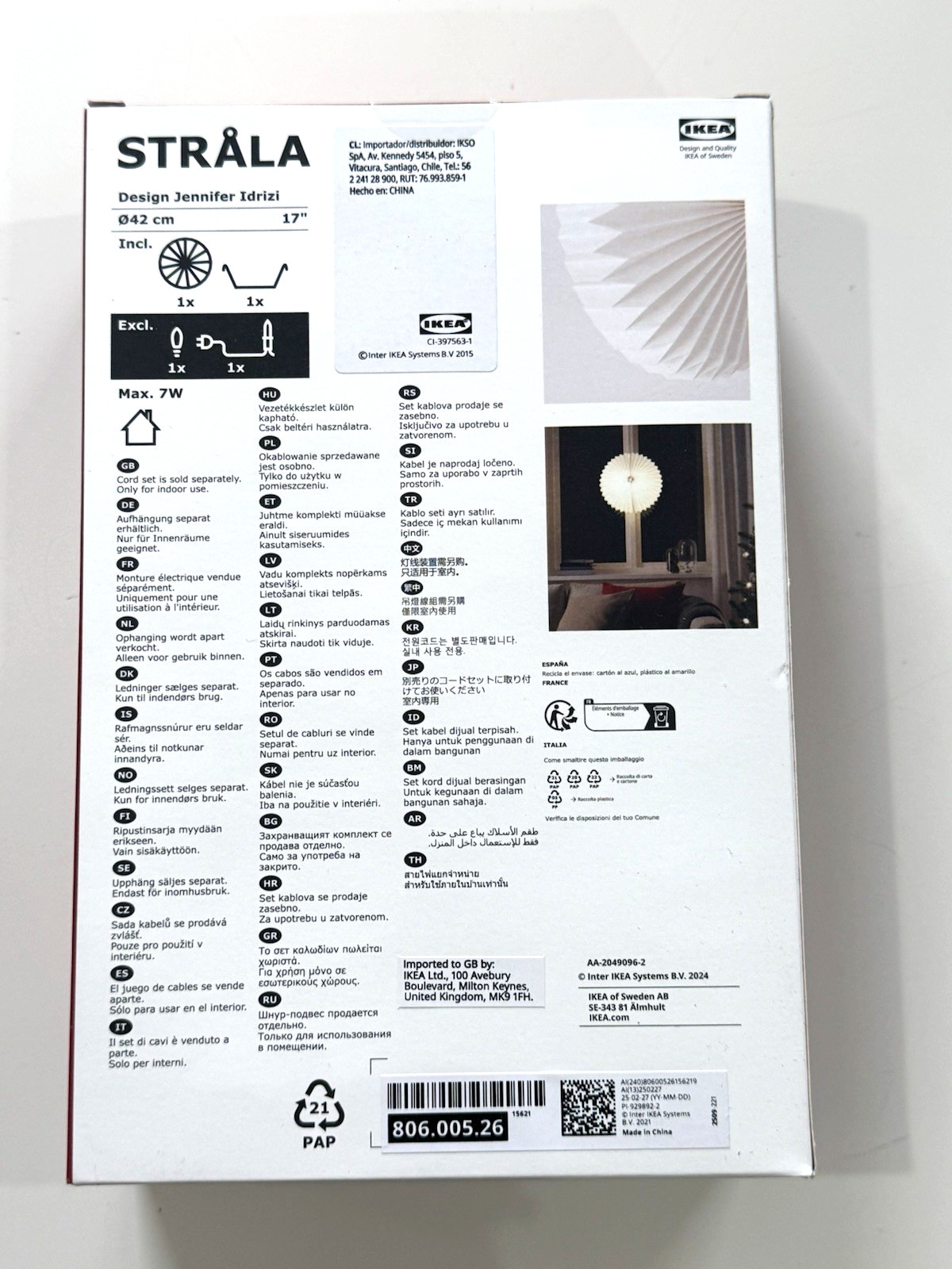 IKEA STRALA Pendant Lamp Shade Origami/White 17 New 806.005.26