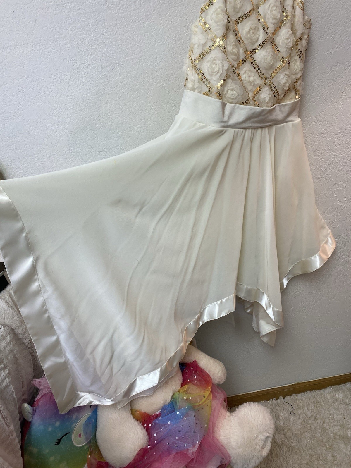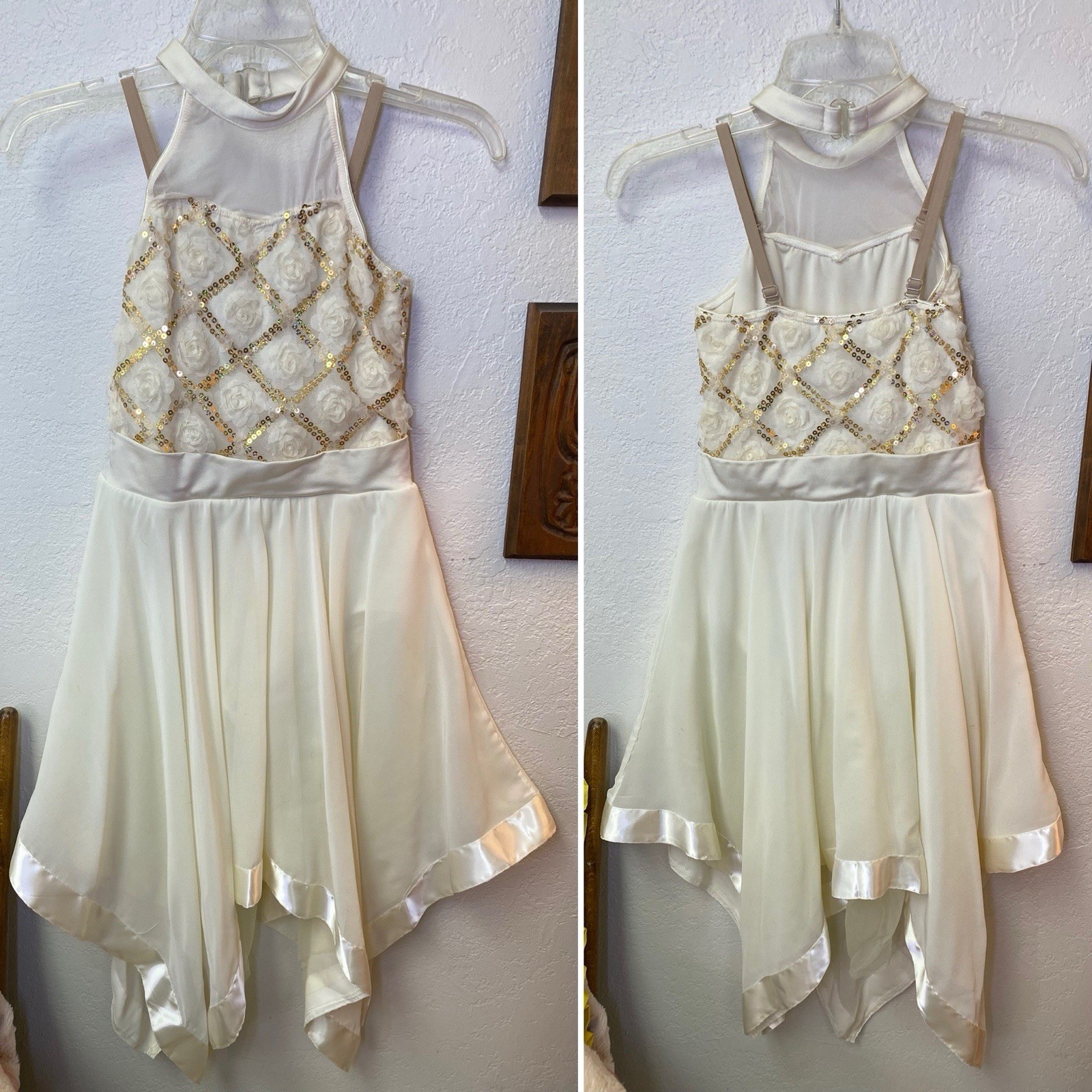 Revolution Gold Sequin Kerchief Hem Ivory Ballet Lyrical Dance Costume Dress LC