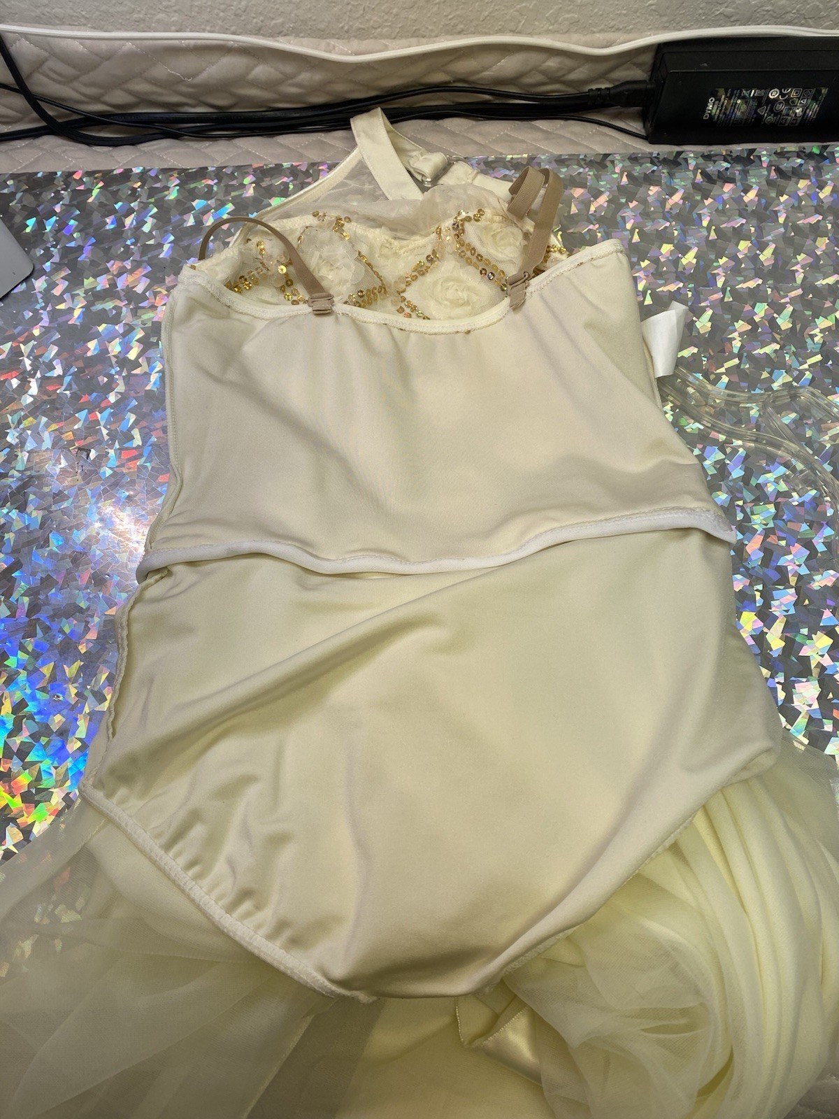 как выглядит Revolution Gold Sequin Kerchief Hem Ivory Ballet Lyrical Dance Costume Dress LC фото