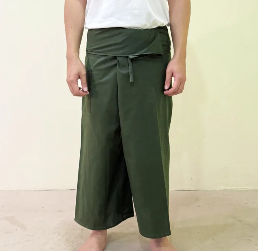Army Green Thai Fisherman Pants Long Leg Unisex Boho Yoga Pilates Massage Spa