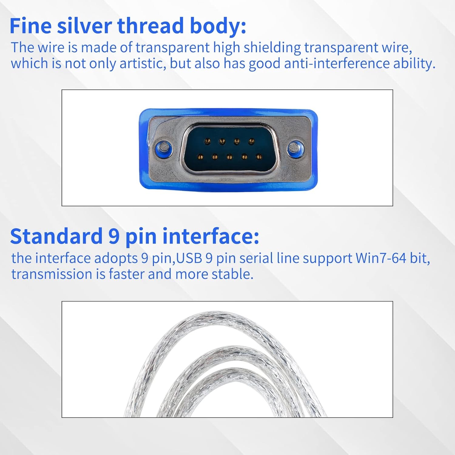 USB 2.0 to Serial DB-9 RS232 Adapter, Windows 7/8/10/11/32/64/XP/RS232 blue