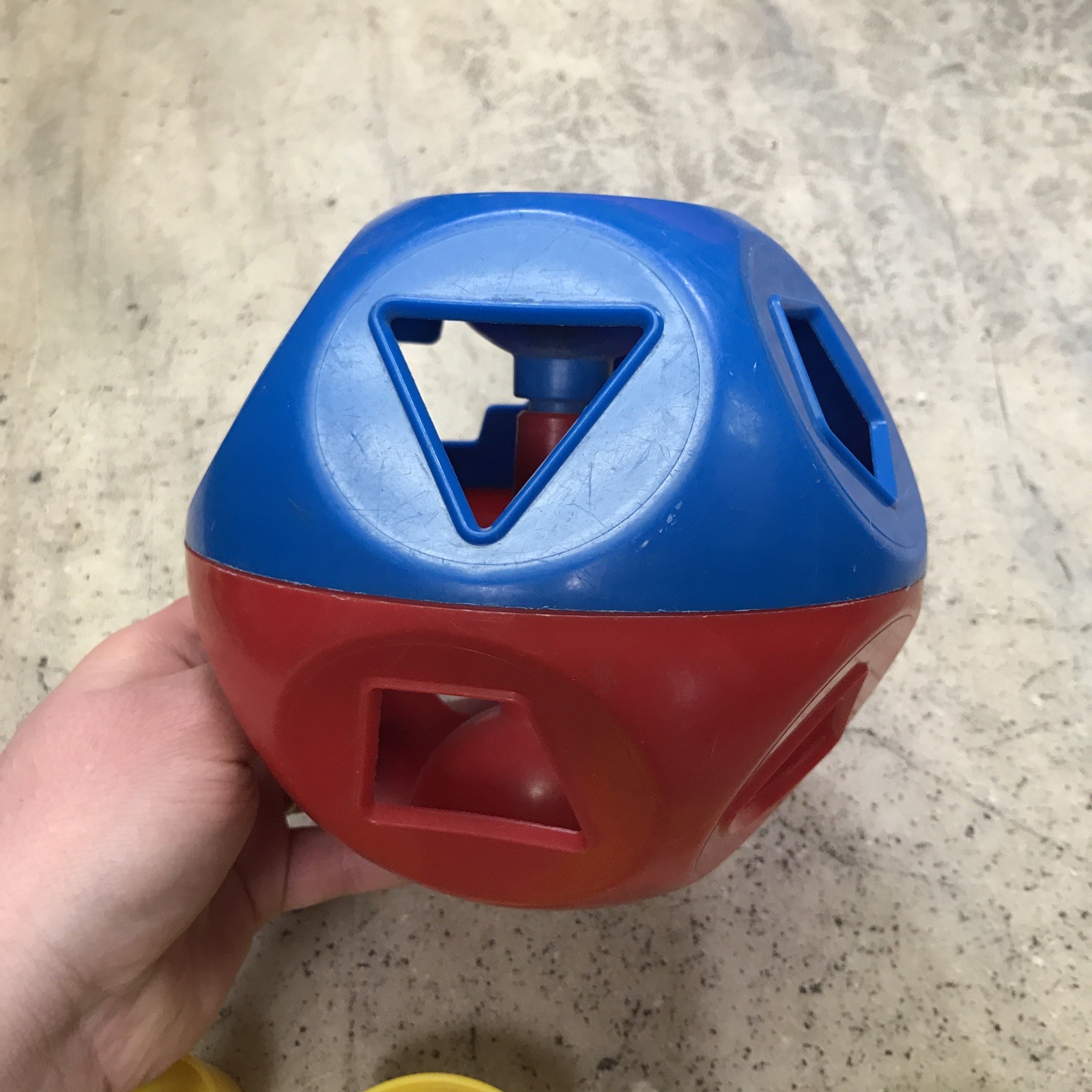как выглядит Vintage Tupperware Tuppertoy Shape-O Ball Toy Red Yellow Blue Missing 1 Piece фото
