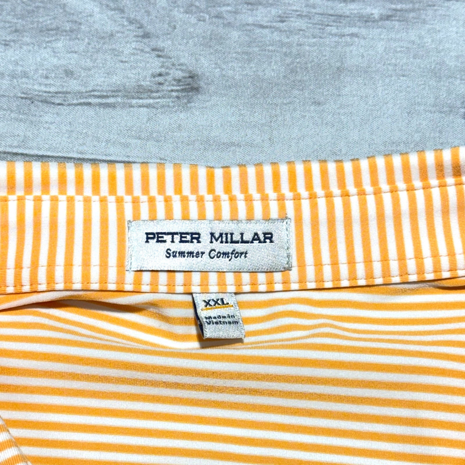 Peter Millar Summer Comfort Polo Shirt XXL Orange White Striped Golf Stretch