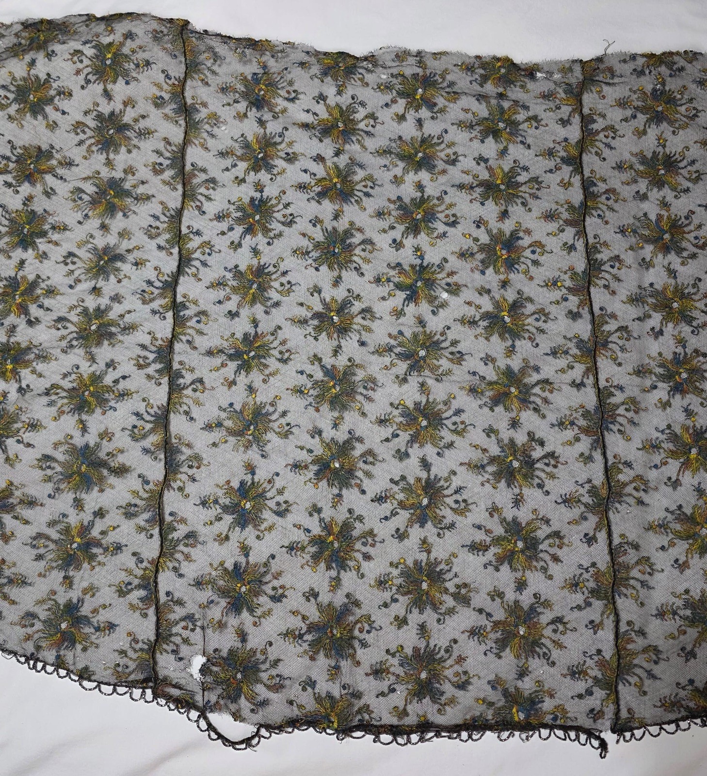 как выглядит EDWARDIAN COLORFUL EMBROIDERED NET LACE DRESS BOTTOM W BEADED EDGE фото
